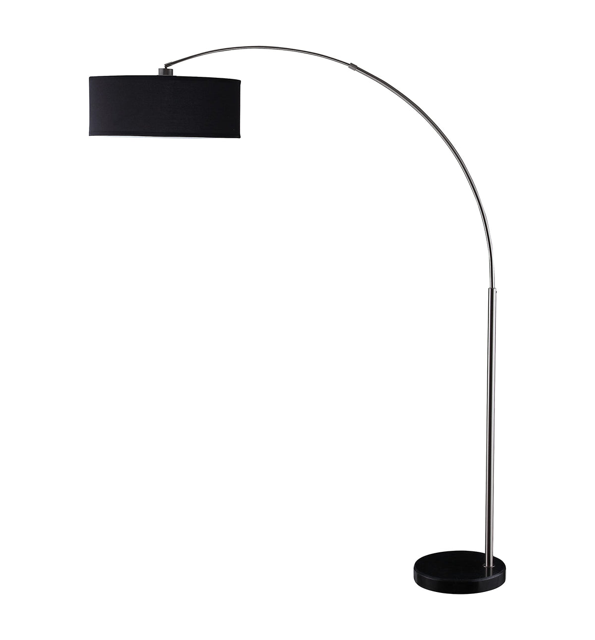Bring the best of modern allure to a stylish contemporary space. This floor lamp exceeds design expectations with a cutting edge profile. Enjoy an exaggerated arched support in a sleek chrome finish. Modern black creates a fabulous contrast in a pendant shade and a lamp base. Operates with a two-way foot switch.