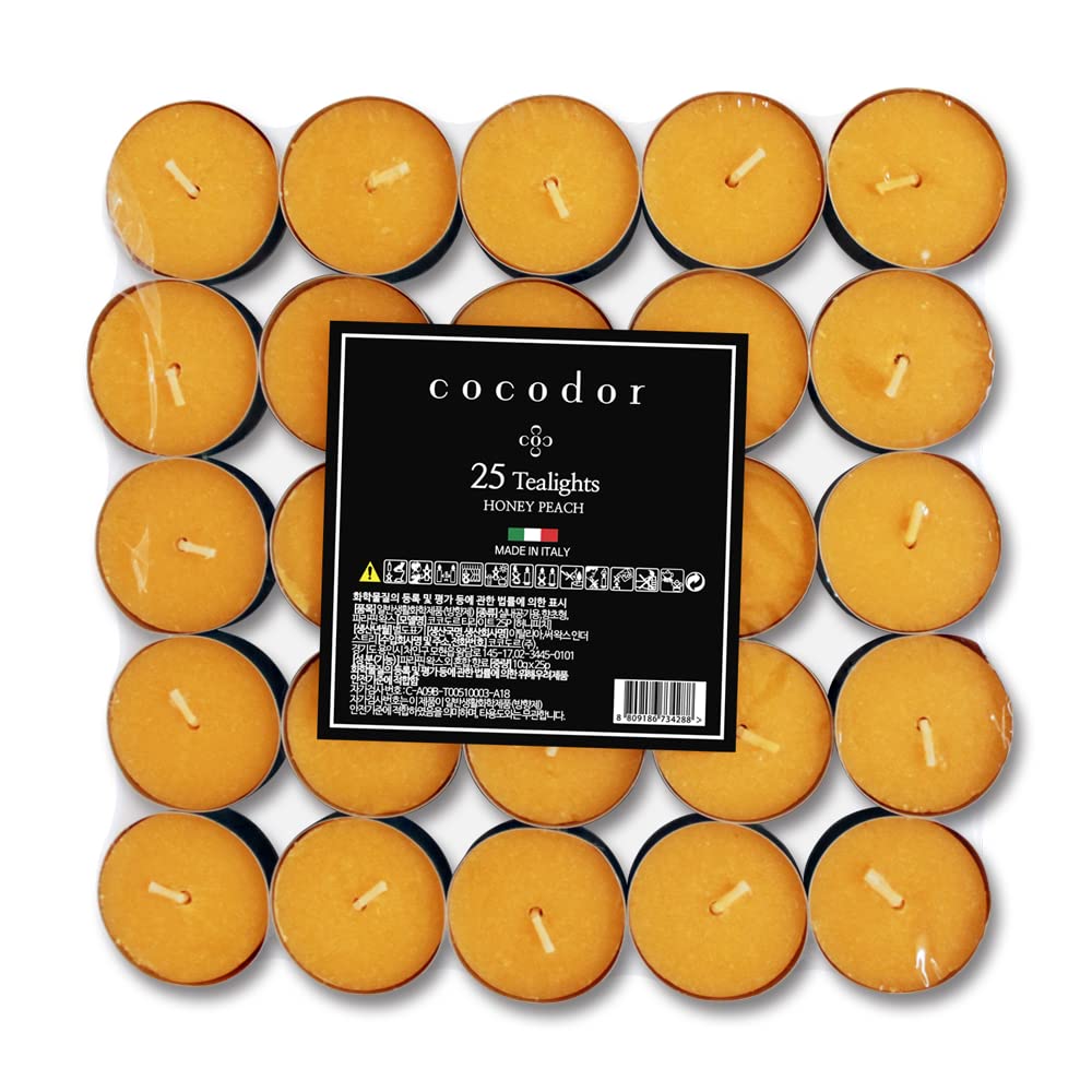 Cocodor Scented Tealight Candles/Honey Peach / 25 Pack / 4-5 Hour Extended Burn Time/Made In Italy, Cotton Wick, Scented Home Deco, Fragrance, Mother'S Day