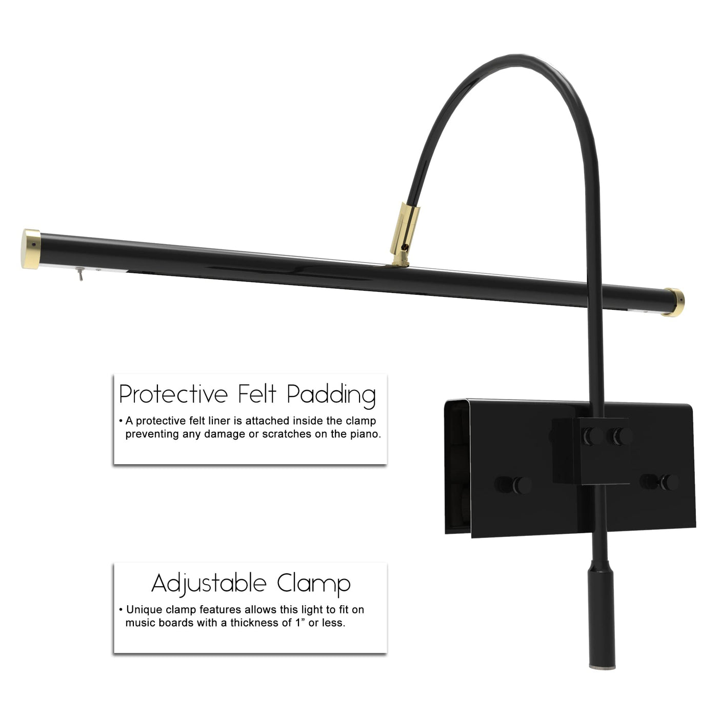 Cocoweb 19" Grand Piano Lamp - Adjustable, Black With Brass Accents, Led Clip-On With Dimmer - Gpled19D