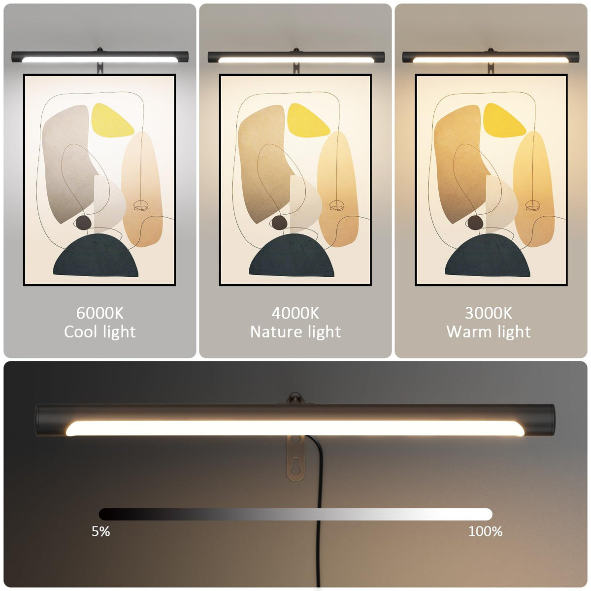 - **Stepless Brightness and Color Temperature Adjustment**: Fine-tune the ambiance of your space with an adjustable brightness and color temperature mechanism, allowing you to create the perfect lighting for any artwork.