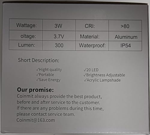 Constructed From well-made Aluminum, The Coinmit Bottle Lamp Is Both Durable And Lightweight. It Features A Built-In 5500Mah Rechargeable Battery, Ensuring Long-Lasting Performance With A Charging Time Of Just 5-6 Hours. The Lamp Offers Three Color Temperature Options—Warm Light, Cool Light, And Natural Light—Making It Perfect For Any Occasion. With An Ip54 Waterproof Rating, This Lamp Is Designed To Withstand Various Outdoor Conditions Without Compromising Functionality.