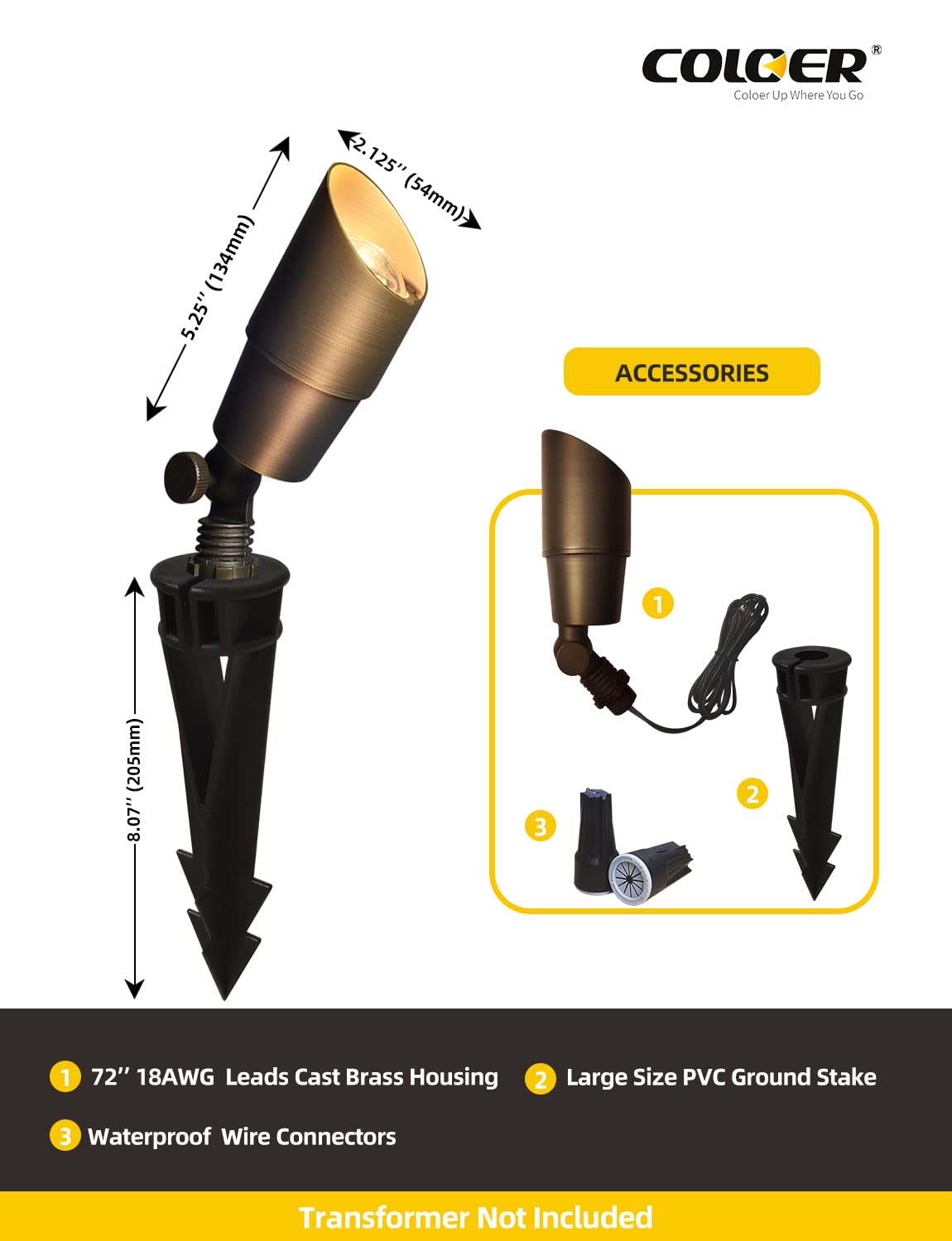 Coloer Die-Cast Brass Low Voltage Spotlight, Outdoor Spot Lights For Yard,12V Ac/Dc Led Landscape Lighting Fixture, Directional Garden Patio Spot Up Light(Bronze, 1-Pack Without Bulb,101B)