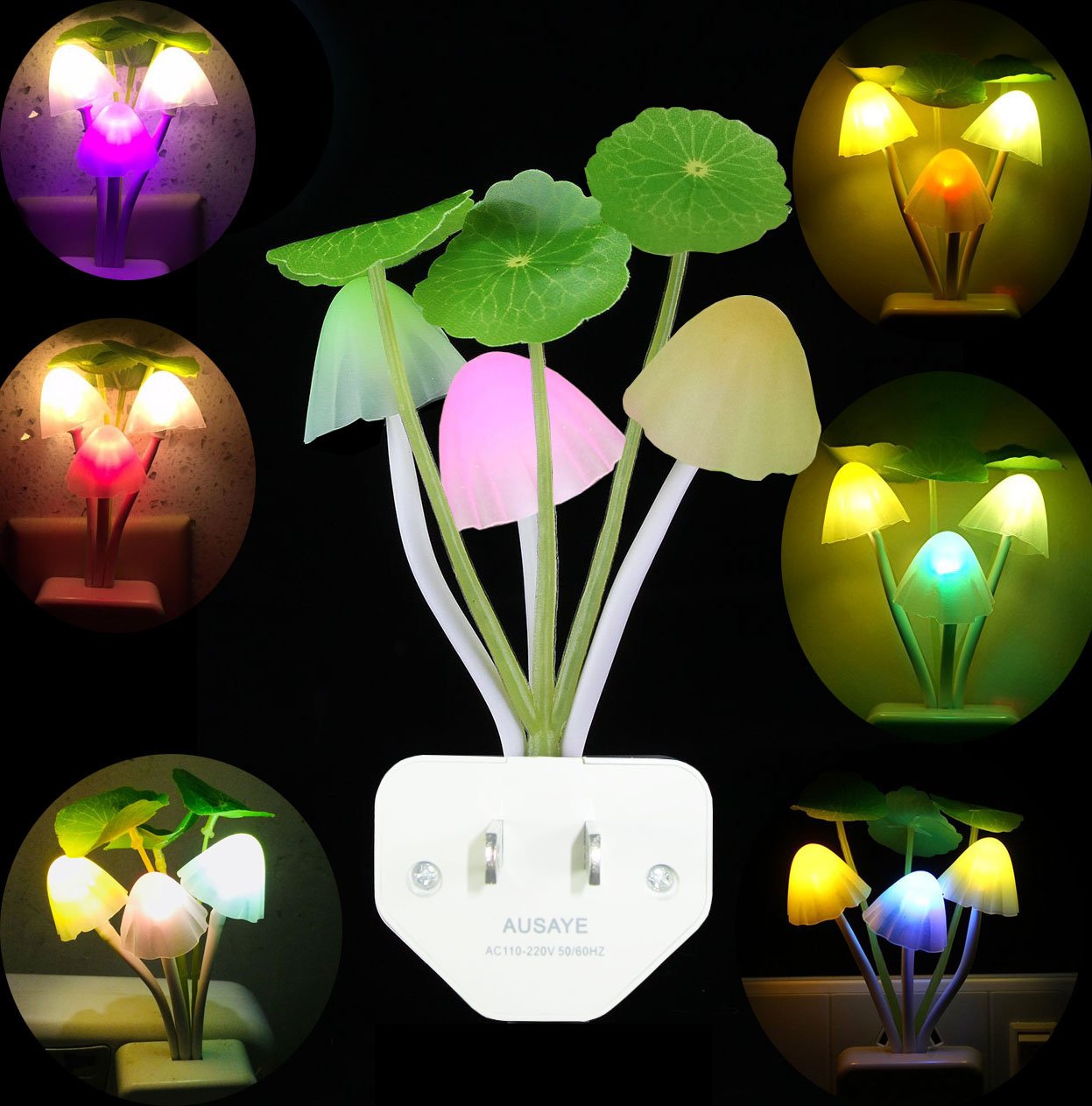 Ausaye 0.6W Plug-In Led Night Light Lamp With Dusk To Dawn Sensor You Must Have The Experience Of Bumping Into Wall Or Furniture When You Walk Around Your House In The Middle Of The Night. Ausaye 0.6W Led Night Lights Are Just Designed To Release You From These Troubles. They Emit Enough Light For You To Walk Around In The Dark Safely Without Having To Turn On Any Overhead Lights, But Not Too Bright As To Be Distracting. Features: Color: 2 White Leds + 1 Color Changing Led,Colorful And Gentle Led Light, Ideal For Home Decoration Material: Leaf: Plastic,Mushroom: Silicon Auto On/Off Energy Efficient Long Lifespan Us Plugs Specification: Sensor Type: Light Sensor Input Voltage: Ac110- 220V Operating Frequency: 60 Hz Power Consumption: 0.6W Led Quantity: 3Pcs Say Good Bye To Bumping Into Obstacles In The Dark, Just Get Ausaye 0.6W Led Night Lights And Put Them Around Your House: Hallway, Bathroom, Kitchen, Living Room, Bedroom, Kids Room, Nursery, Stairway, Entryway. They Will Greatly Help You In Night Operations.