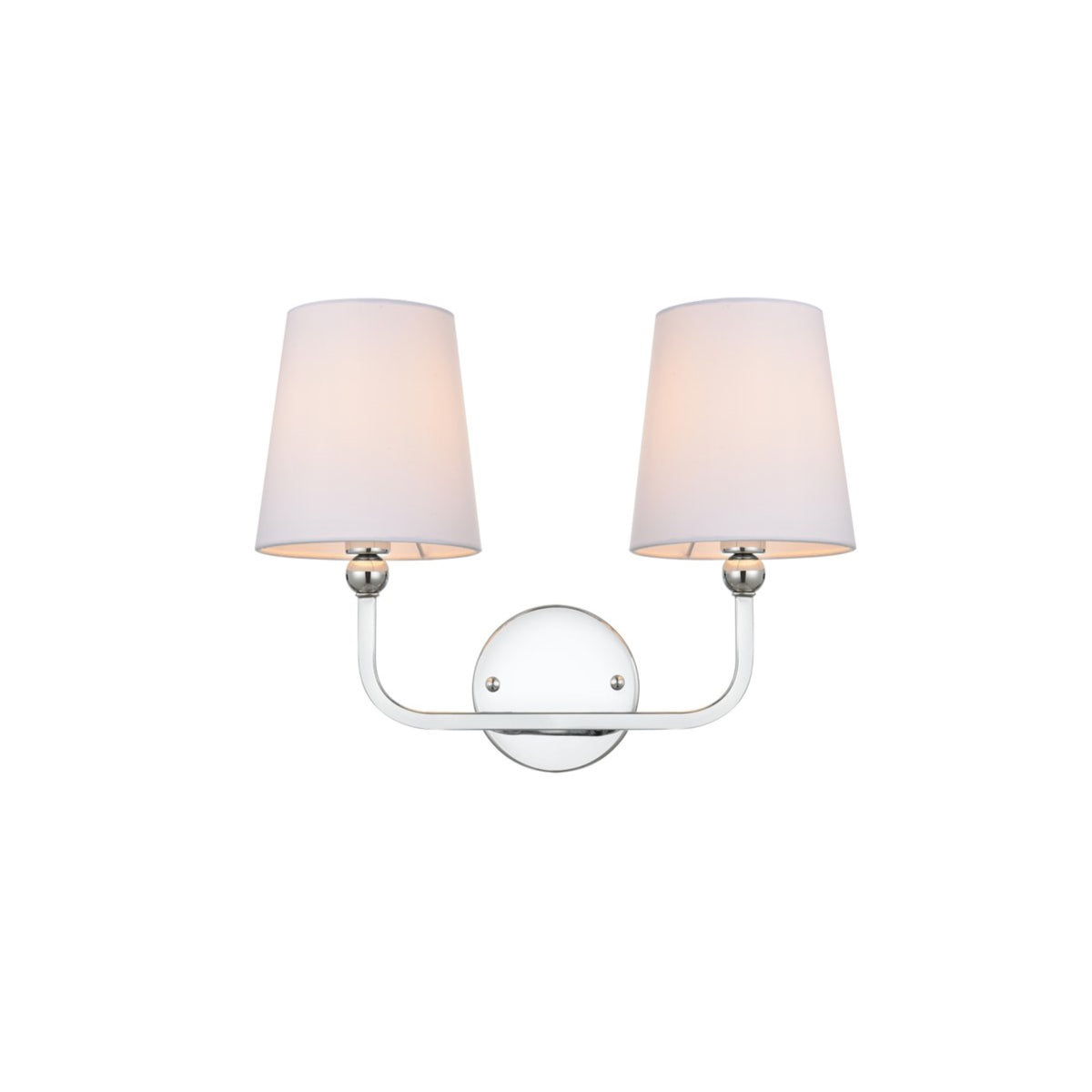 A modern twist on a traditional design, this vanity light is perfect for sprucing up your bathroom. Rated for use in damp locations, this iron fixture features a round backplate, curved arms, and fabric shade accents. Completely versatile, you can place this wall light as an uplight or downlight. Rated for use in damp locations, this will work perfectly over a vanity in your bathroom.