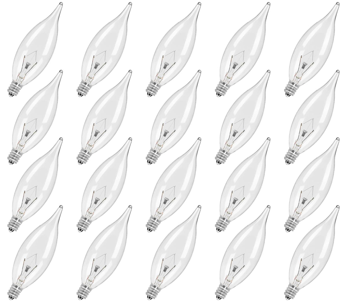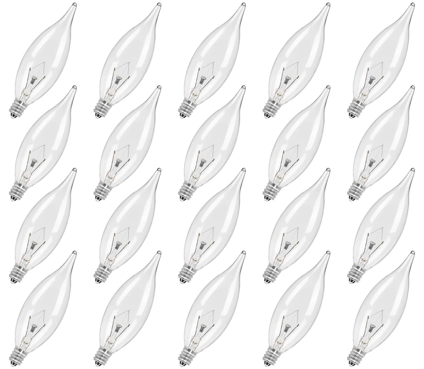 Colwatt 20-Pack E12 Candle Light Bulbs 25W Warm White 2500K, 240 Lumen Dimmable Chandeier Light Bulbs For Ceiling Fan, Pendants Or Outdoor, Ca10 Clear Candelabra Base Bulbs