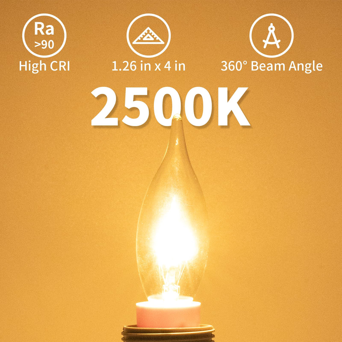 Q: What type of base do the COLWATT Candle Light Bulbs have?A: These bulbs feature an E12 candelabra base, making them compatible with a variety of light fixtures.