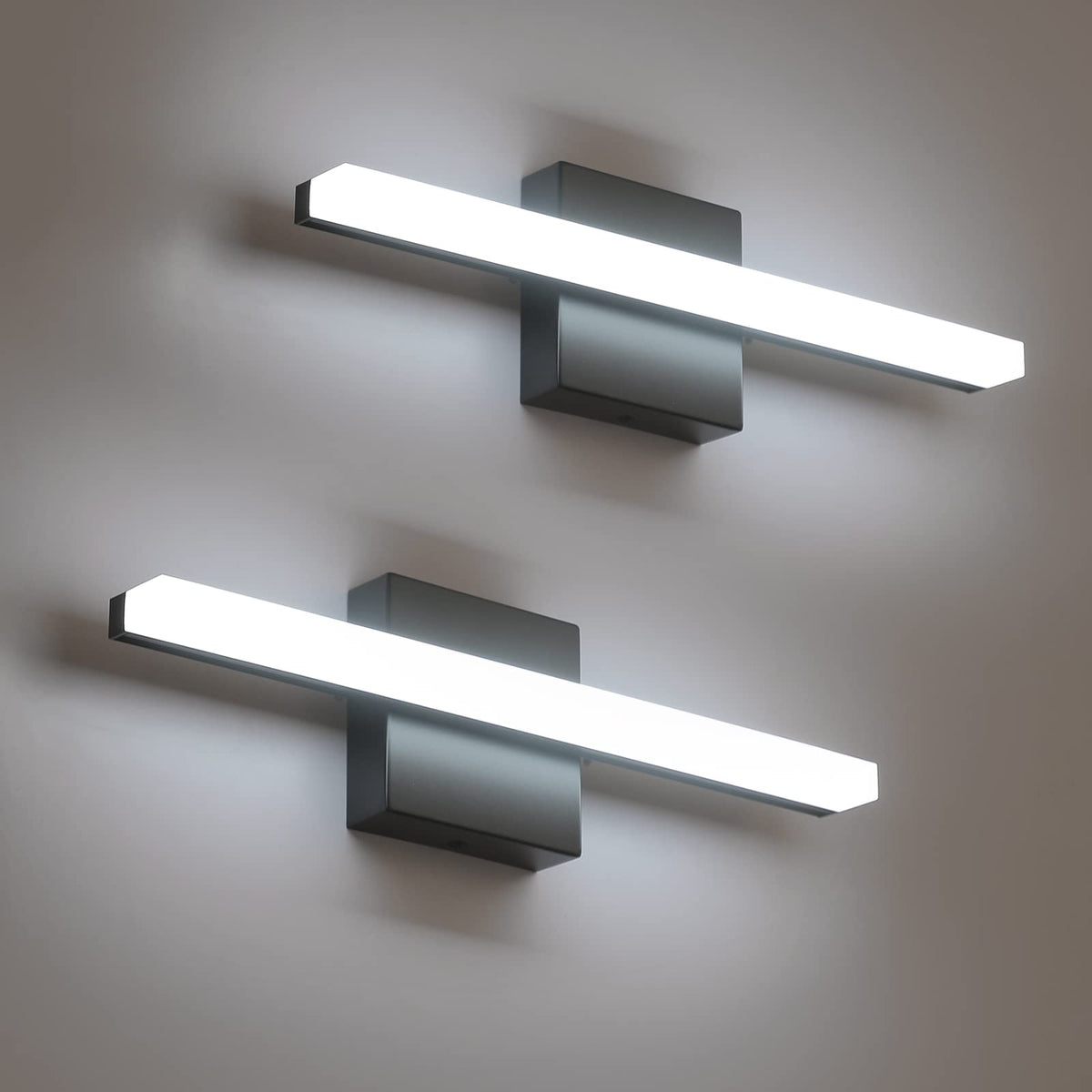 Combuh Led Bathroom Vanity Light Bar 16 Inch 9W Black Ip44 Over Mirror Lighting Fixture Wall Sconces Indoor Modern Cool White 60
