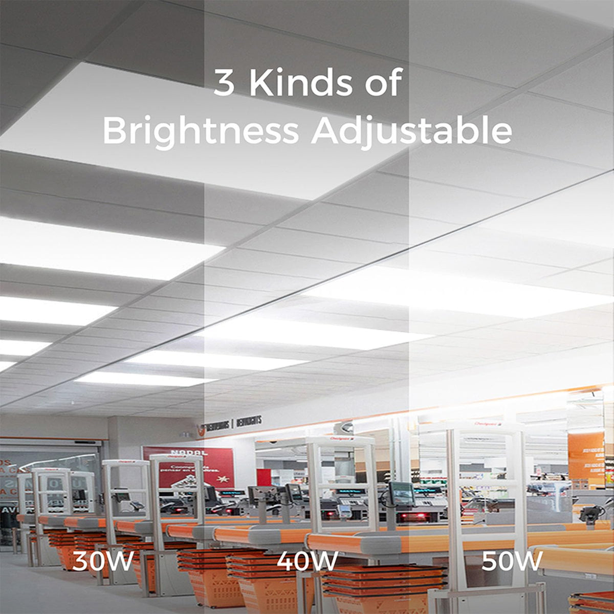 Constructed with well-made aluminum and PMMA LED beads, our flat panel lights deliver up to 5500 lumens. With a slim design, they seamlessly integrate into standard drop ceilings, offering a clean and professional look. The lights feature three selectable color temperatures (3000K, 4000K, and 5000K) and adjustable wattage settings (30W, 40W, and 50W), allowing customization to fit any environment. Their energy-efficient design consumes up to 85% less energy compared to traditional lighting options, reducing energy costs and minimizing environmental impact.
