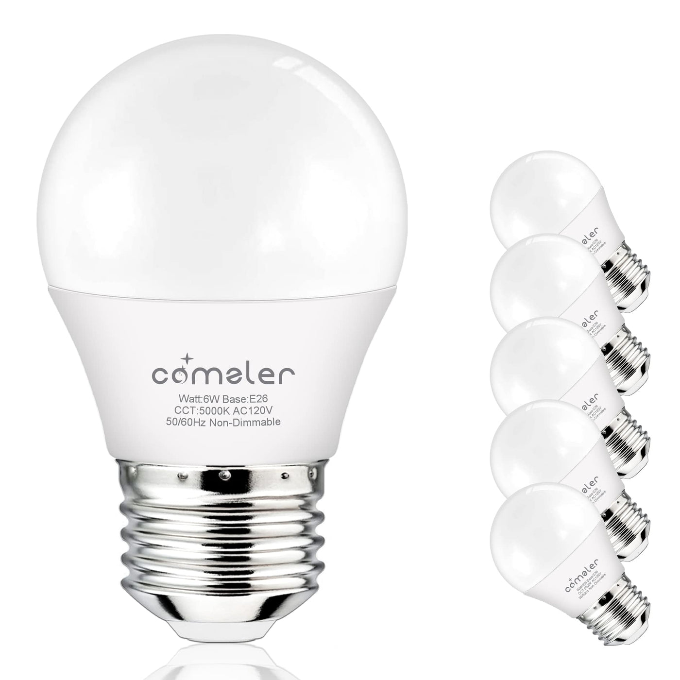 Comzler 6W A15 Led Bulb Daylight 60 Watt Equivalent, E26 Medium Screw Base Small Light Bulb Cool White 5000K, Home Lighting Deco