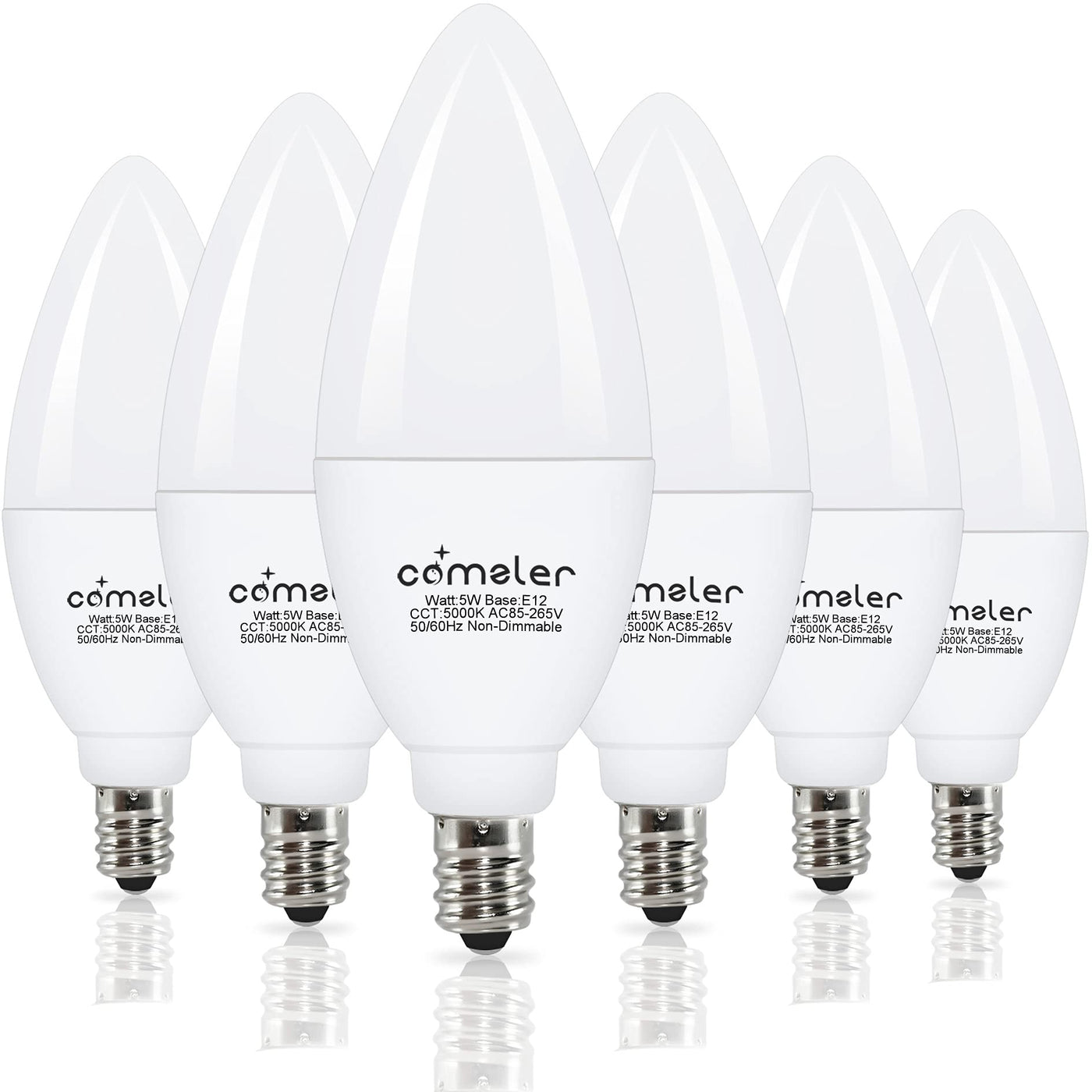 Comzler E12 Ceiling Fan Light Bulbs, Led Candelabra Bulbs, 5 Watt (60 Watt Equivalent), Daylight 5000K Led Chandelier Light Bulb
