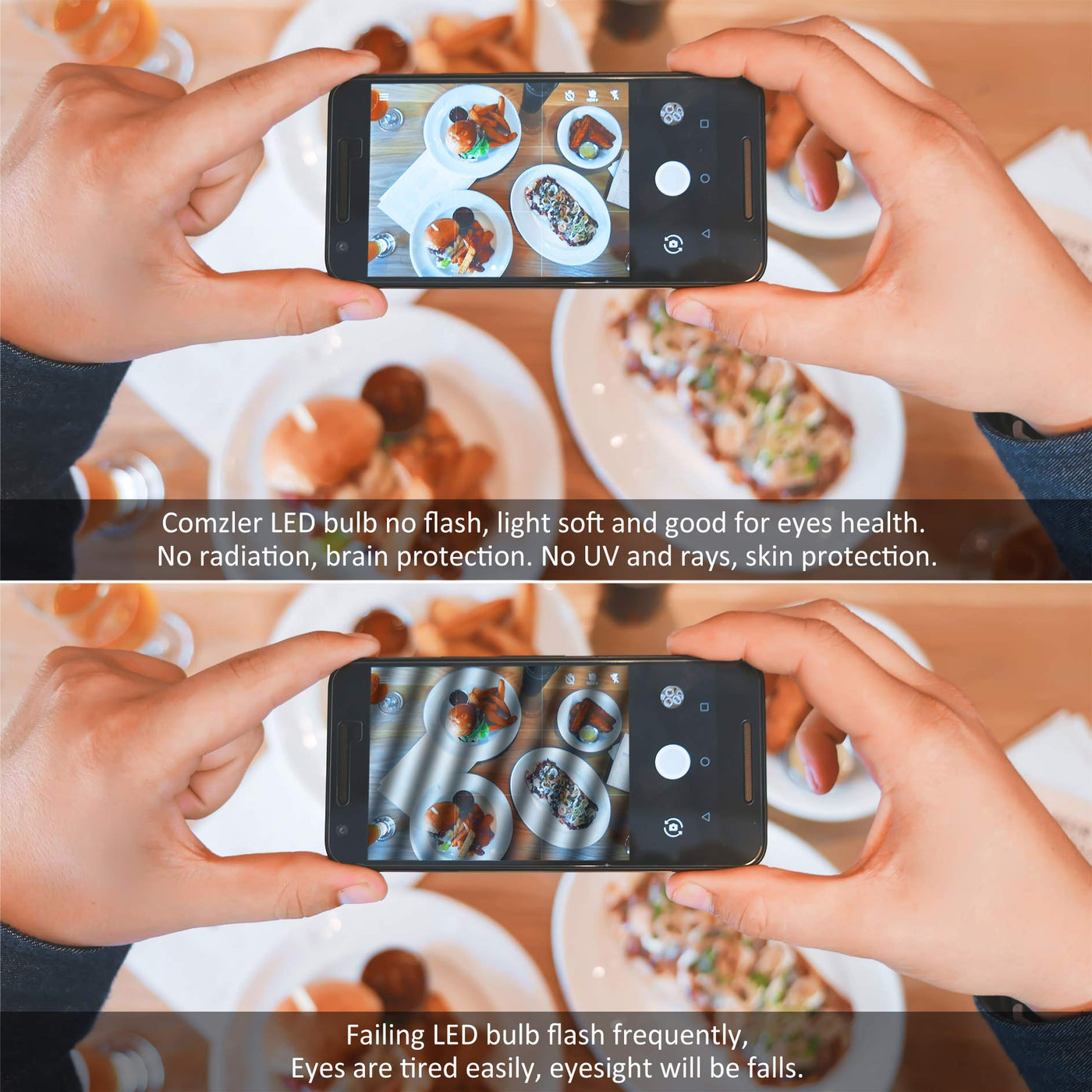 Features: Save Money On Electricity Bills compared with traditional 60 watt incandescent bulbs, our E12 candelabra LED Light Bulbs produce the same bright light but only consume 5 watt power which only cost you about 0.6 US dollars per year, using 90% less energy. No Flash and Reliable comzler led candelabra bulb No lead or mercury. No flash, No UV or IR. Have no damage to human. Every bulb has been tested for at least 24 hours by our strict Qc system before packing. High color Rendering Index(cRI>80) The color rendering index(cRI) is the ability to restore color. The higher the cRI, the more real visually of the color.By using this LED candle bulb, brings out the true color of objects around you. Ideal household lighting for indoor use comzler Warm Light Bulb fit for home lighting, restaurant, hotel, coffee shop, mall, bar,etc. Perfect as candelabra led, ceiling fan bulbs, led chandelier bulb. Advanced drawer-type packing comzlers Mini candelabra Led Bulb use advanced drawer-type packing and blister packaging, every package passed the shock-proof testing before delivery, no worry about damage. Specification: Working Voltage: Ac 85-265V Power: 5W Base: E12 Small Base Light color: Daylight White certification: cE Fcc RoHS ccT: 5000K Dimmable or not: No Package: 6 pieces in one box Tip: 1,Turn off the power before you install the bulb 2,Please dont use them with dimmer switch, as the dimmer may cause the LED lights flicker, noise, or even damage.
