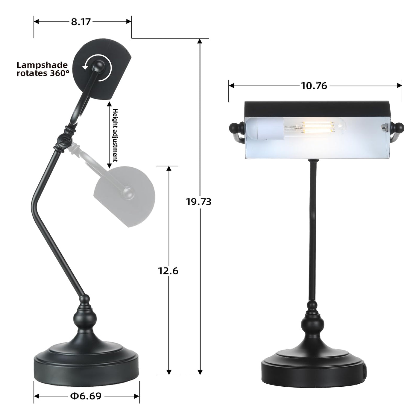 Vintage Desk Lamp No Assembly Required, Includes Led Bulb Type-C+Usb Charging Port Height, Angle, Brightness Adjustable For Hotel, Living Room, Bedroom, Office, Study And Reading