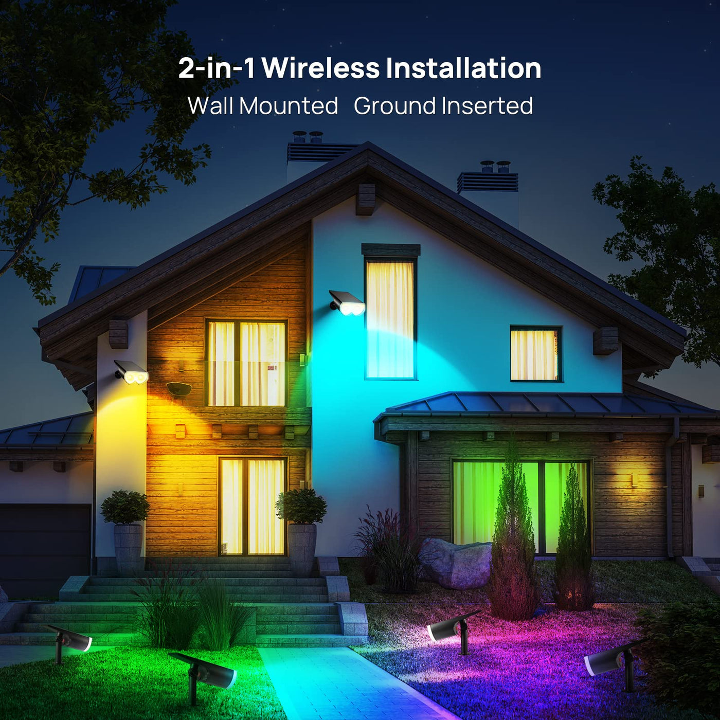 Q: How can I install the Consciot Solar Spot Lights?A: The lights can be installed in two ways: by inserting them into the ground using the included stakes or by mounting them against a wall or fence with the provided screws and bracket.