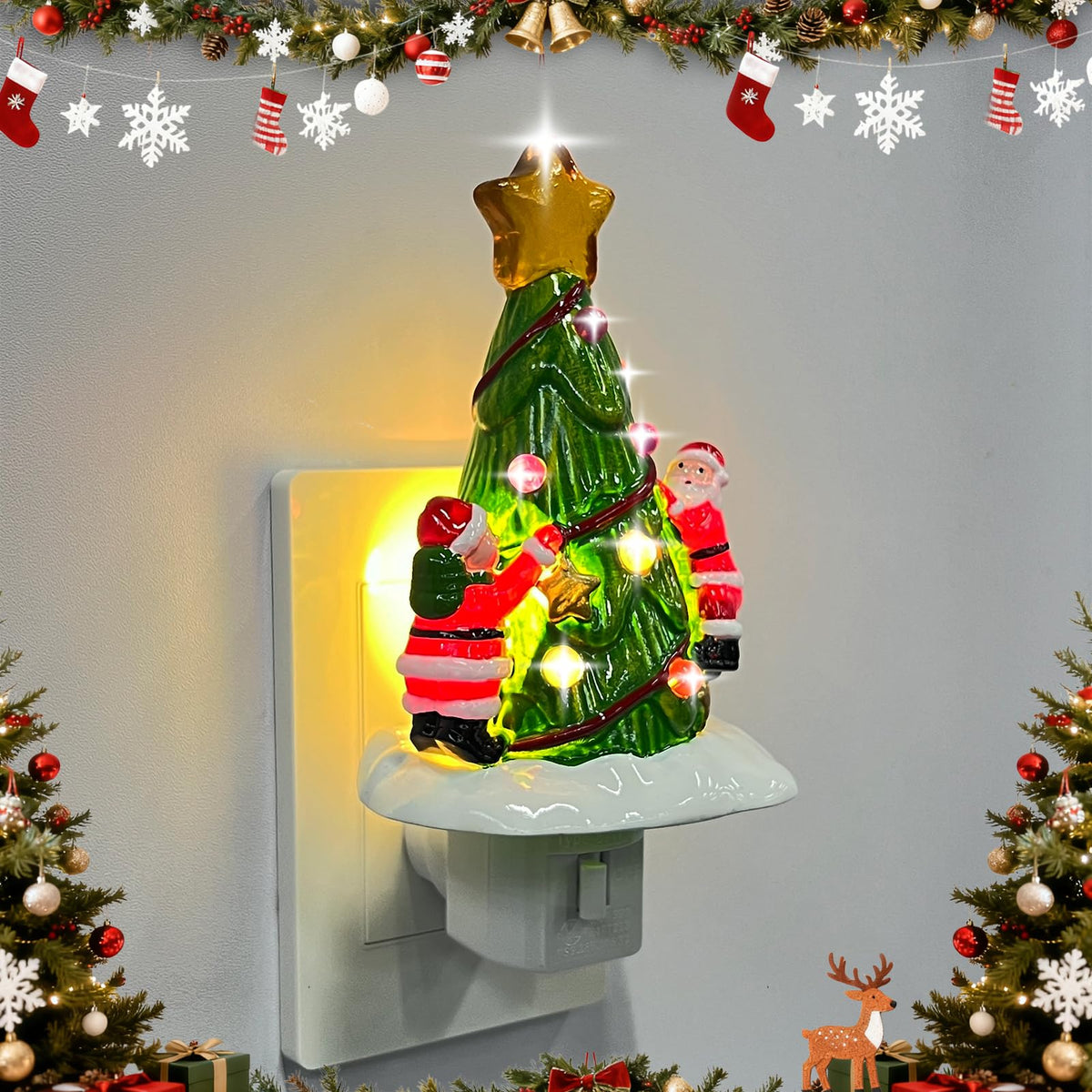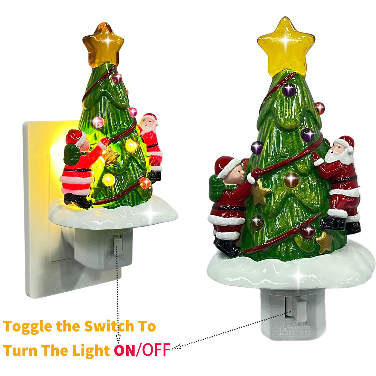 Q: How do I operate the Christmas Tree Night Light?A: The Christmas Tree Night Light operates by simply plugging it into a wall outlet. It features automatic evening illumination sensors along with manual override options for customized use.