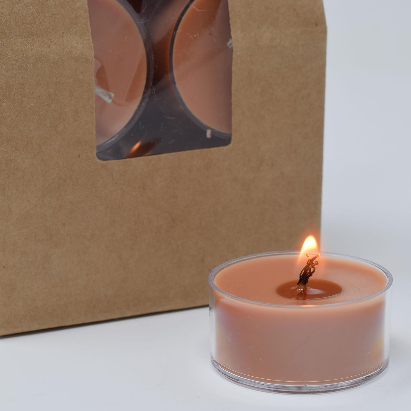 Made with renewable, USA grown soy wax. If you have been looking for an Eco-friendly, healthier alternative to paraffin tea lights, then you are in the right place! Our soy tea light candles are handmade with 100% GMO-free soy wax, a pure cotton wick, and a flame retardant clear tea light cup that allows the beautiful glow of the flame to shine through. Not only do our soy tea light candles burn cleaner than paraffin tea lights, they are also long lasting, with 5-6 hours of burn time per tealight! Our true to life strong scents will help you relax and unwind after a long day, transporting you to faraway places in your imagination and setting the perfect mood for your day. Use them to complement a romantic evening, to add the perfect glow to your bubble bath, or just to enjoy the amazing scent!