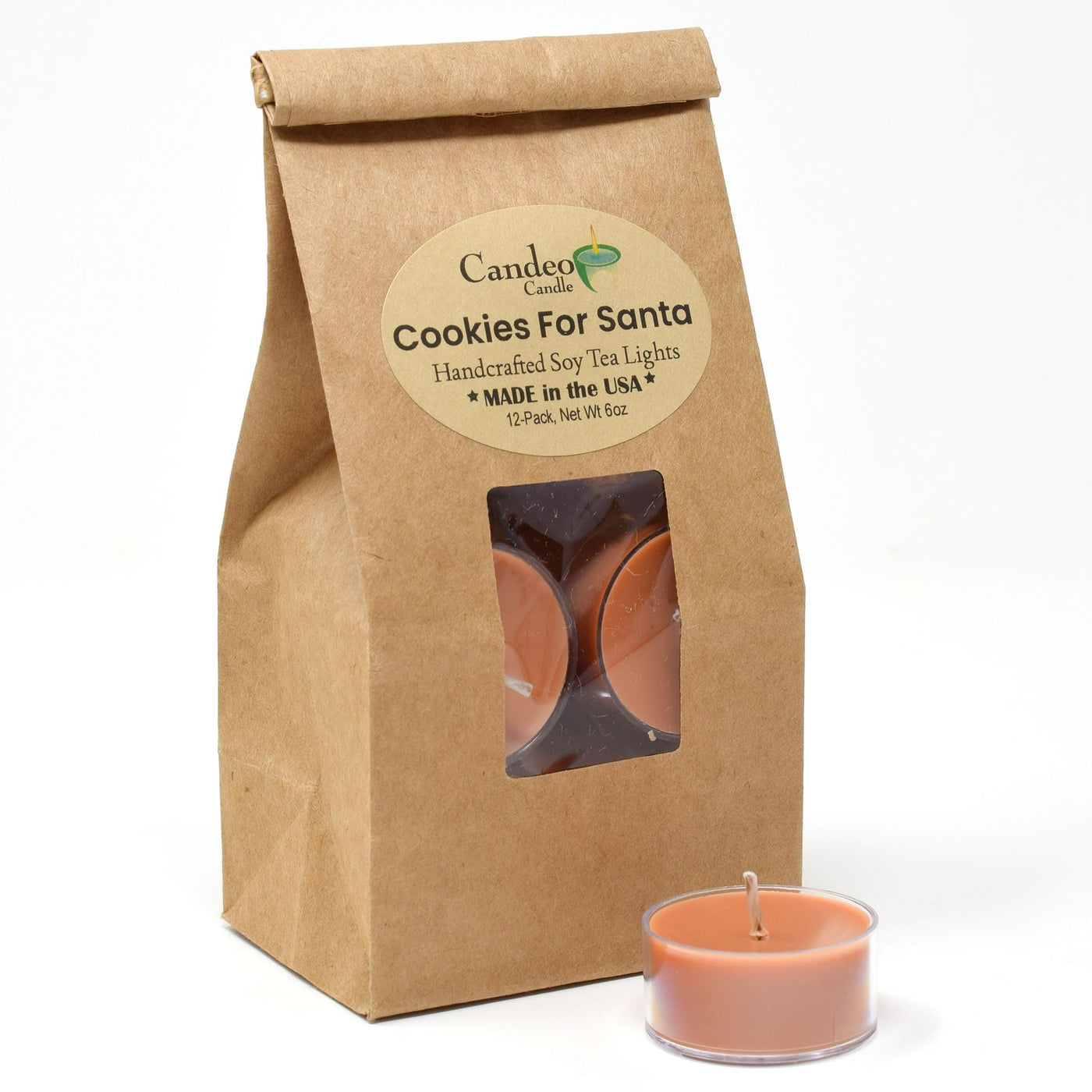 Cookies For Santa Scented - 12 Pack - Soy Tealight Candles - Highly Scented - Made With Soy Wax - Handmade In The Usa - Candeo Candle - Christmas, Winter, Holiday Scents