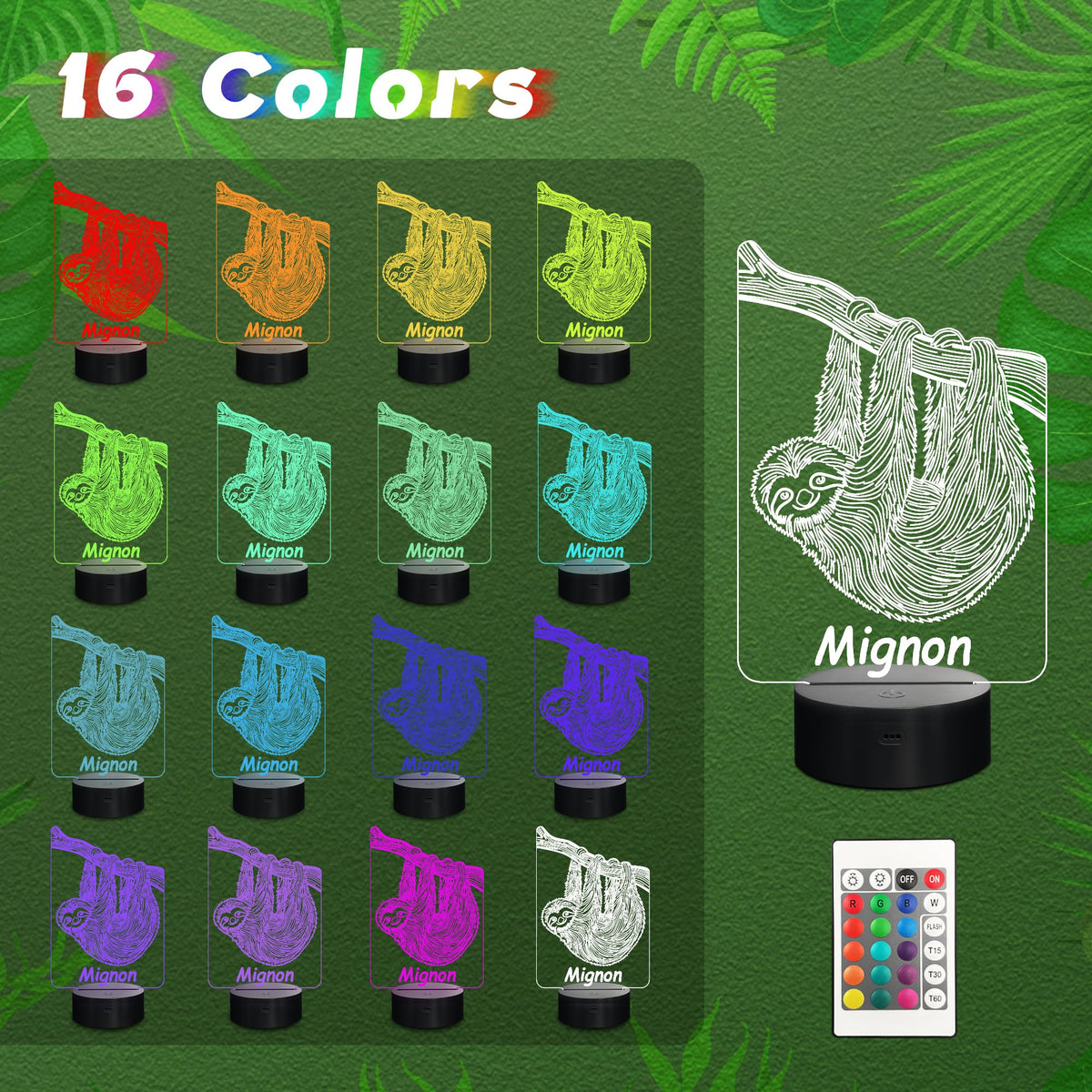 CoolGift Mart Sloth Night Light, 3D LED Optical Illusion Sloth Lamp with Remote Control and Timer, Christmas Birthday Gifts for Sloth Lovers Kids Adults