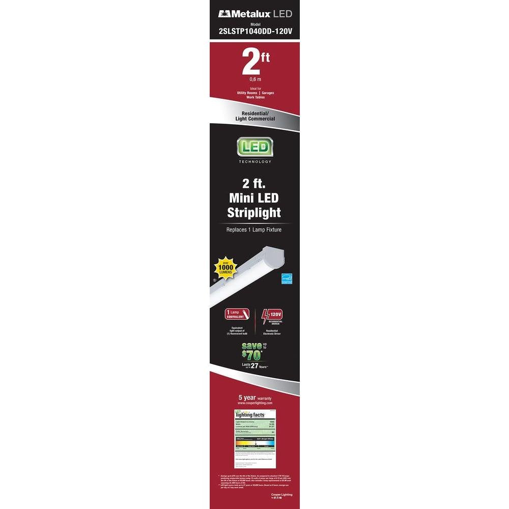 2’ 120V Metalux LED Strip Light delivers 1000 lumens of light output combined with 83 CRI and 4000K color temperature for ample illumination. Equipped with Triac dimming down to 10% and 70% lumen maintenance LEDs offering 50, 000 hours of life. Accommodates surface, wall and suspension mounting. Product includes a 5 year and is cULus and damp location listed as well as Energy Star rated.