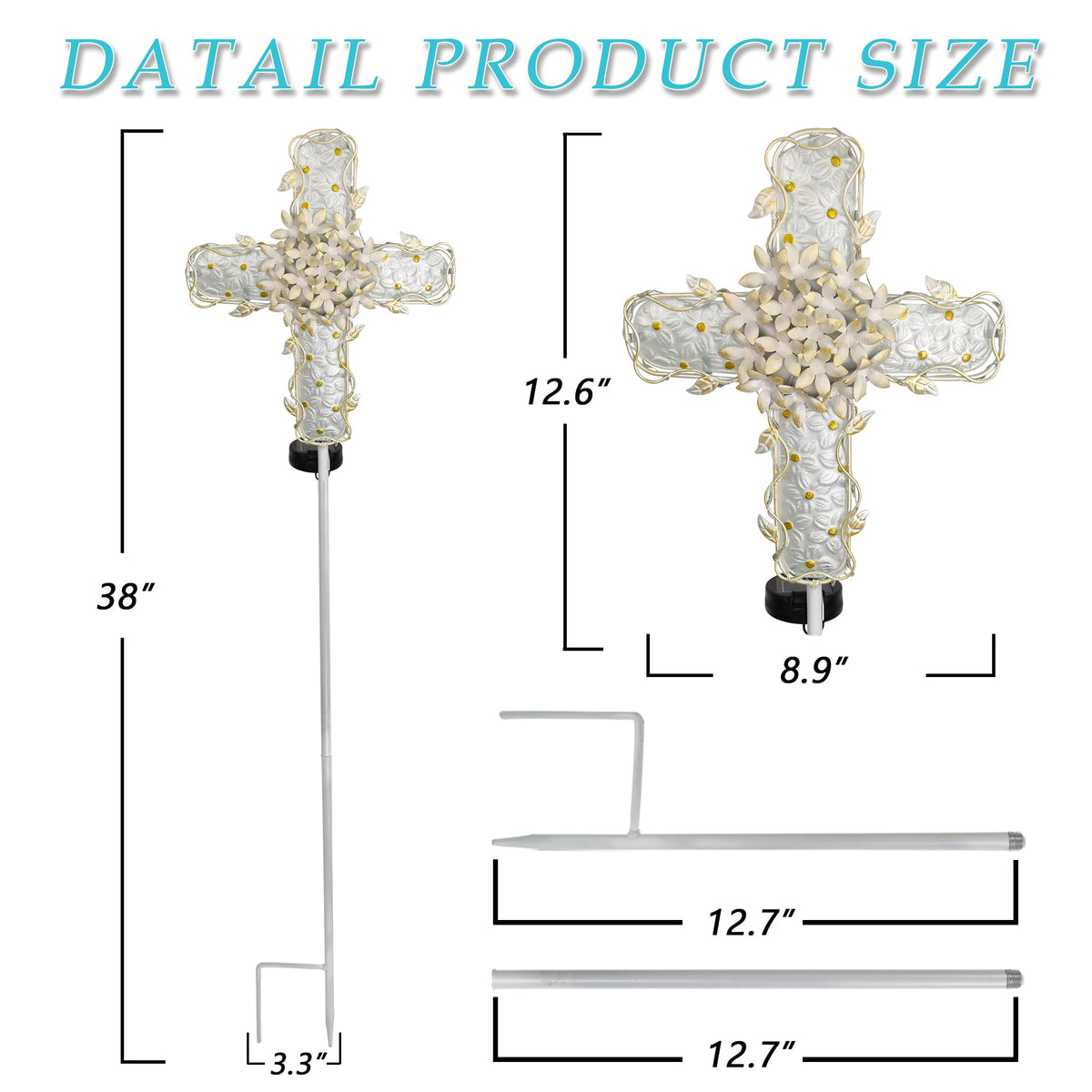 Coozzyhour 38Inch Solar Cross Garden Lights Outdoor Decorative - Solar Metal&Glass Cross White Hydrangea Flower Stake Lights- Wa