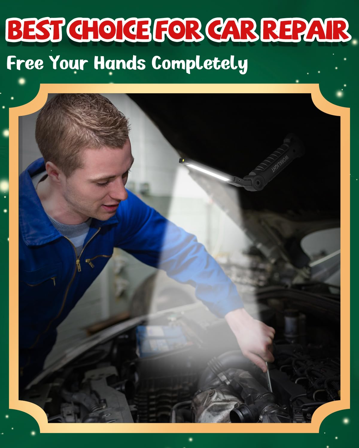 Coquimbo Tool Gifts For Men Him Dad Husband, Rechargeable Led Work Light Grill Light With Magnetic Base, 360° Rotate 5 Modes Mechanic Light For Car Repair Fathers Day Birthday Gifts (2 Pack Black)