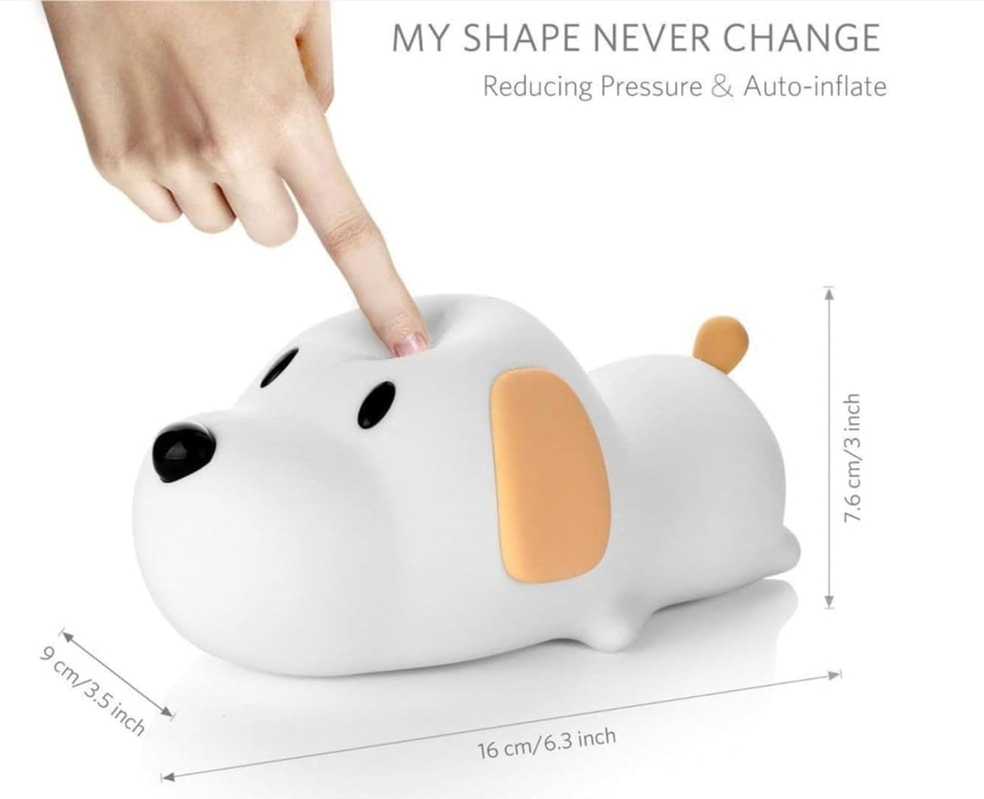 DescriptionSnuggle Up to Bedtime Bliss with our Soft Silicone Warm Light Bedtime Puppy ! The perfect companion for cozy bedtime moments. This adorable puppy-shaped night light emits a gentle and soothing warm glow, creating a comforting atmosphere in any childs room. Crafted from soft silicone, its cuddly and safe for little ones to cuddle with as they drift off to sleep. Say goodnight to darkness and hello to bedtime bliss with this lovable bedtime puppy. Soothing Yellow Light:- This adorable lamp features a soft silicone puppy design that emits a gentle and comforting glow, making it the perfect companion for bedtime. Its equipped with USB rechargeability for convenience and allows you to adjust the brightness, switching between a soothing warm light and a bright white light to suit your needs. Rechargeable and Portable:- Built-in 1200mAh lithium batteries can provide you with long-term lighting, eliminating the need to replace the battery. Cute and light design, not very large volume, is very convenient to carry when camping travel with your child.