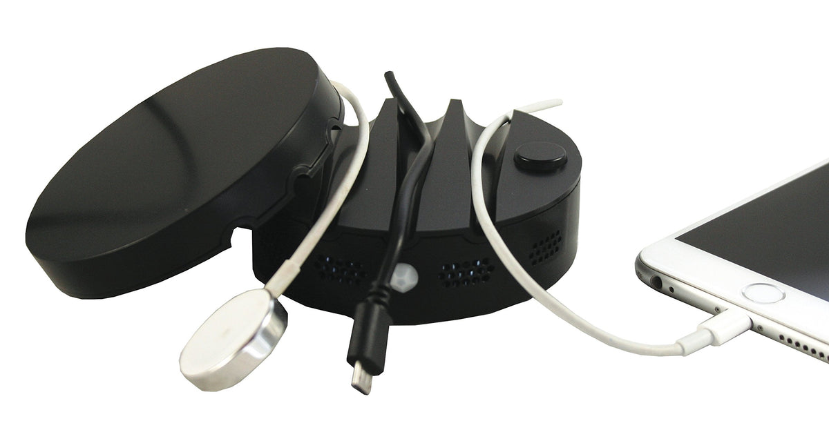 Cord Buddy - Gotcha! Glow Charger Cord Holder with Motion Sensor Night Light (Holds 3 Cords), Black, #CG03001, 3 Inch Diameter, 1.5 Inch Height