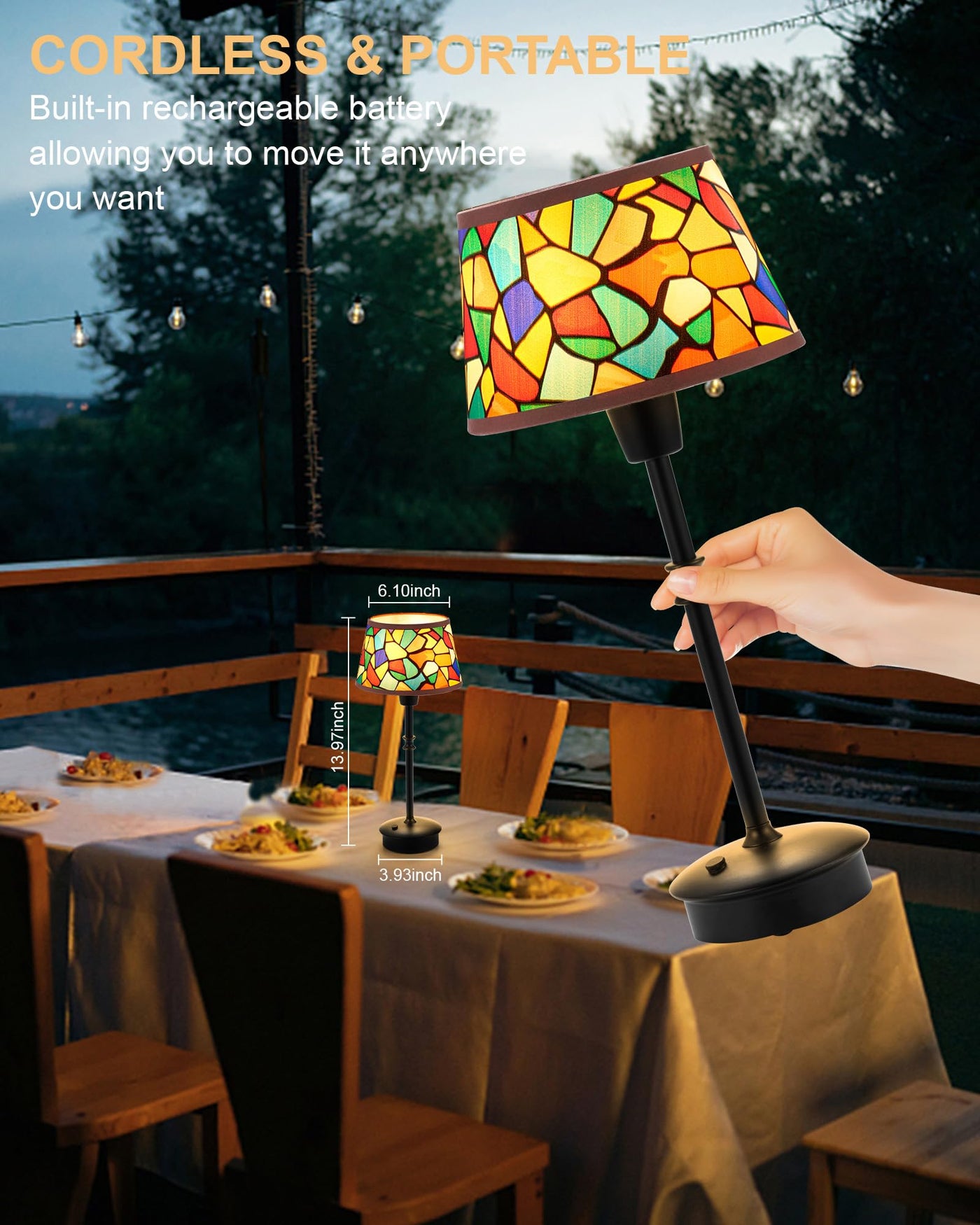 Experience The Perfect Blend Of Convenience And Style With Our Small Cordless Table Lamp With Dimmer. Featuring A Powerful 5200Mah Rechargeable Battery, This Lamp Offers Up To 10 Hours Of Cordless Illumination, Allowing You To Effortlessly Place It Anywhere-From Your Bedside Nightstand To Outdoor Patios, Dining Tables, Restaurants, Bars, And Kitchens. The Intuitive Touch Control Enables You To Adjust Between Three Brightness Levels, Providing Customized Lighting For Reading, Dining, Or Creating A Warm, Inviting Atmosphere. Emitting A Soft Warm White Light, It Enhances Any Space With Its Cozy Glow. The Compact 13-Inch Height And Unique Lampshade Design Make It A Stylish Addition That Complements Both Modern And Classic D Cor. Built With Durability In Mind, This Lamp Is Perfect For Everyday Use And Versatile Enough For Various Settings. Whether You'Re Enhancing Your Home Ambiance Or Seeking The Ideal Lighting Solution For A Commercial Space, This Rechargeable, Battery-Operated Lamp Delivers Exceptional Performance. It'S Not Just A Lamp; It'S A Statement Piece That Adds Warmth And Elegance To Any Environment.