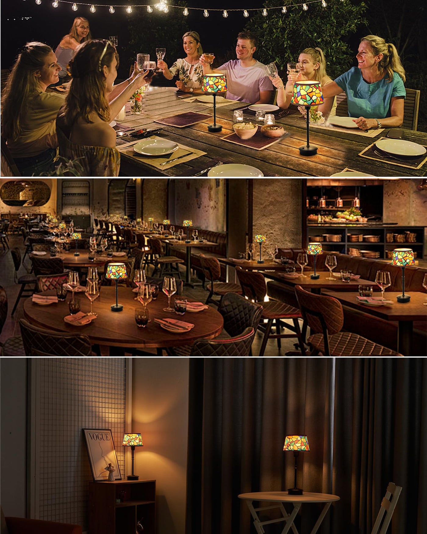 Q: Can this lamp be used outdoors?A: Absolutely! The cordless and rechargeable design of this lamp makes it suitable for outdoor use, such as on patios or during gatherings, providing warm and cozy ambient lighting without the hassle of cords.