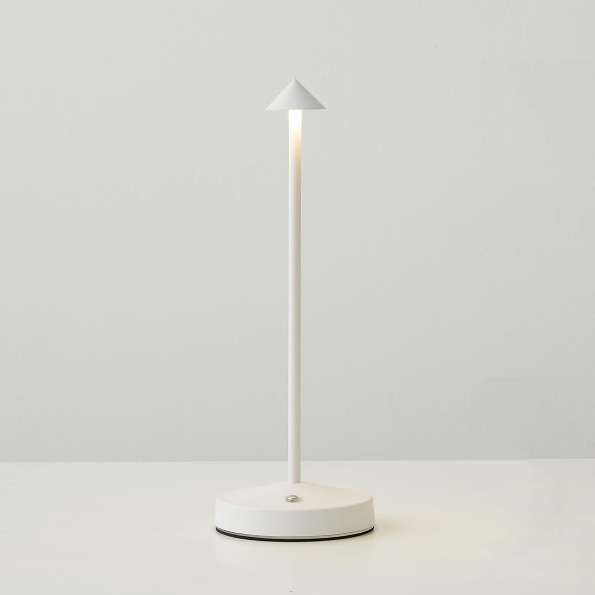 Q: What is the design of the cordless table lamp like?A: The lamp features a minimalist candle design made from lightweight aluminum, which not only adds an elegant touch to your decor but also ensures portability and ease of use.