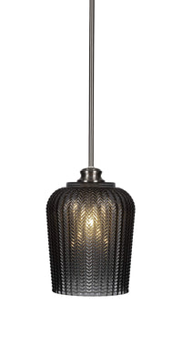 71-BN-4282 Cordova Stem Hung Pendant In Brushed Nickel Finish With 9" Smoke Textured Glass. Rated for: Dry location. Light Bulb Data: 1 E26 60 watt. Bulb included: No.