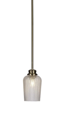 72-NAB-4250 Cordova Stem Hung Pendant In New Age Brass Finish With 5" Clear Textured Glass. Rated for: Dry location. Light Bulb Data: 1 E26 100 watt. Bulb included: No.