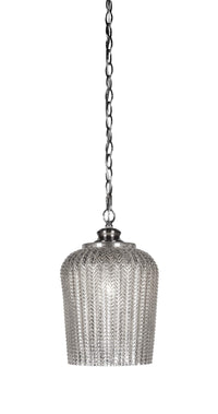 91-BN-4283 Cordova Chain Hung Pendant Shown In Brushed Nickel Finish With 9" Silver Textured Glass. Rated for: Dry location. Light Bulb Data: 1 E26 60 watt. Bulb included: No.