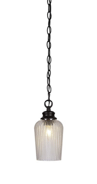 92-MB-4250 Cordova Chain Hung Pendant In Matte Black Finish With 5" Clear Textured Glass. Rated for: Dry location. Light Bulb Data: 1 E26 100 watt. Bulb included: No.