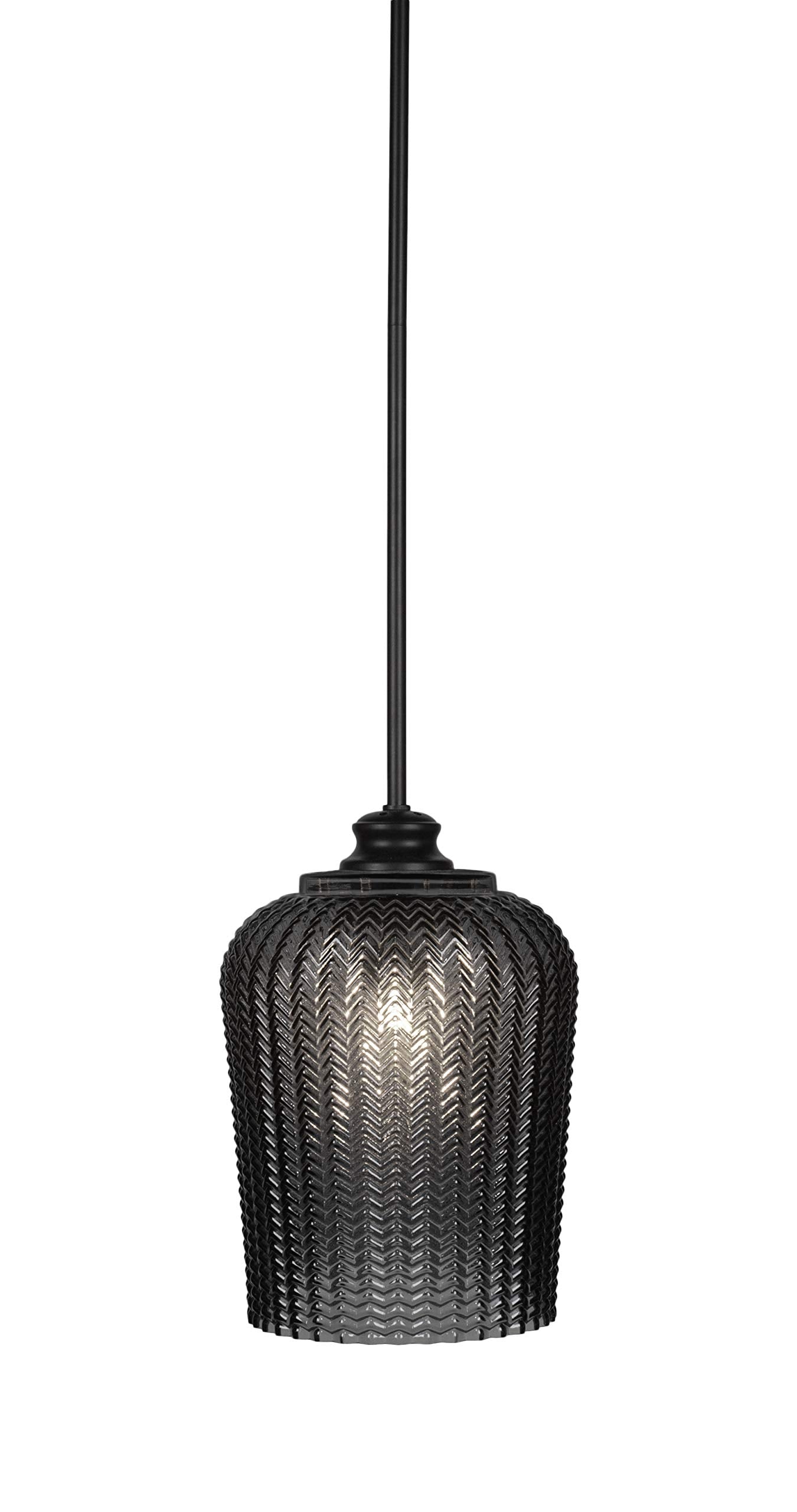71-MB-4282 Cordova Stem Hung Pendant Shown In Matte Black Finish With 9" Smoke Textured Glass. Rated for: Dry location. Light Bulb Data: 1 E26 60 watt. Bulb included: No.