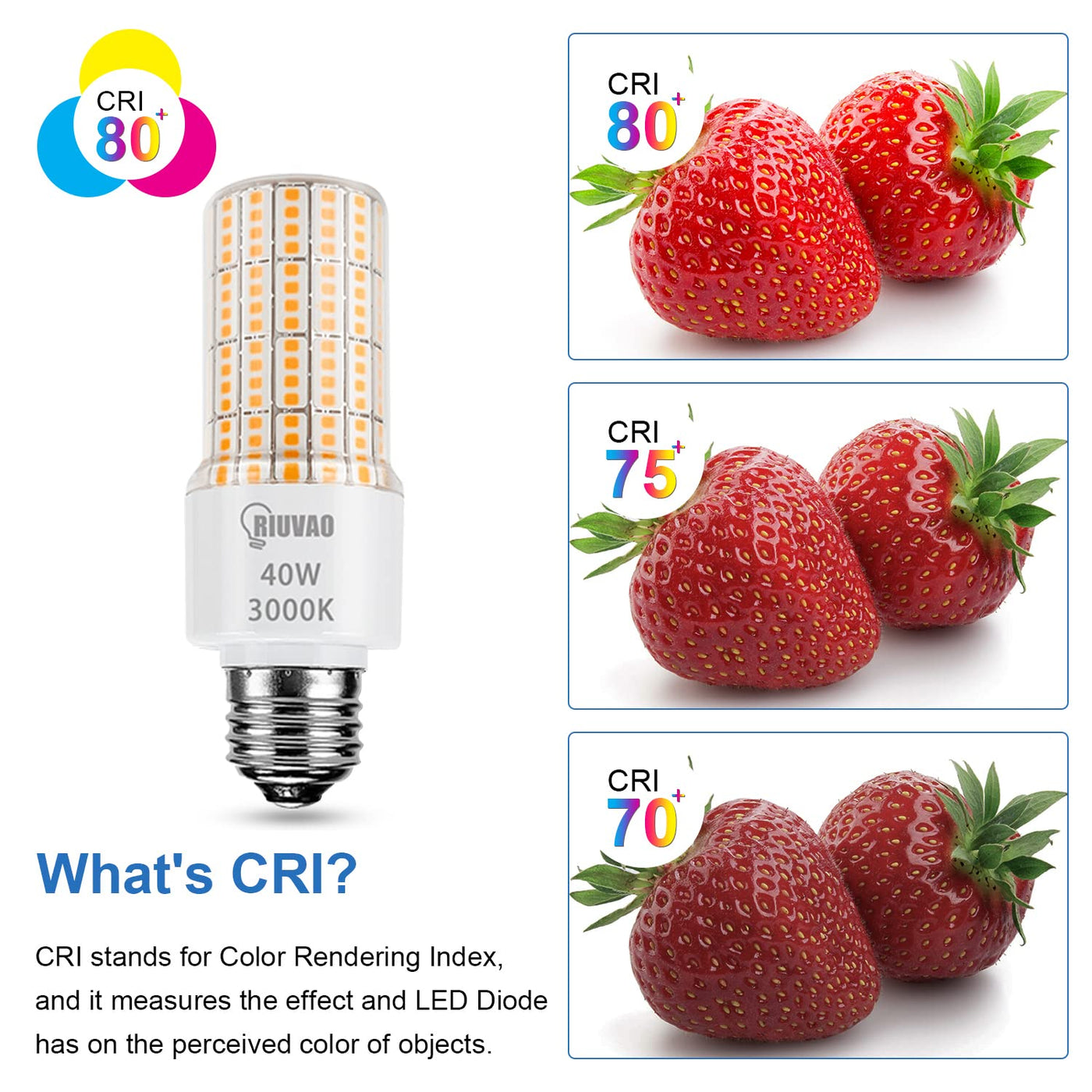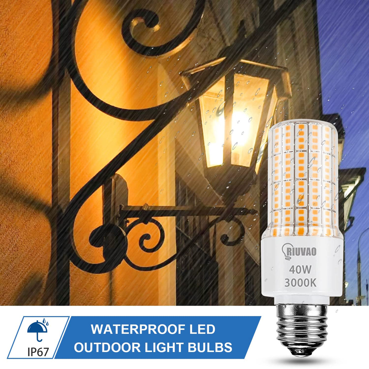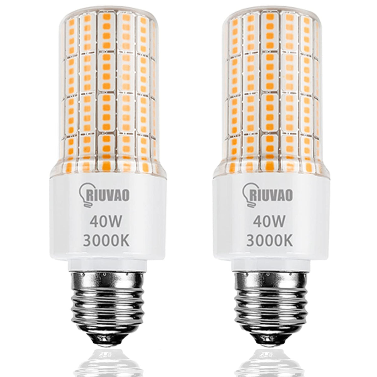 Specifications: Base: E26 / E27 Base Voltage: AC 100V - 240V Wattage: 40W(300W Equivalent ) Lifespan: 35000 hours Beam Angle: 360 degrees Lumen: 5000LM Dimmable: No Color Temperature: Cool White (3000K) CRI: Ra>80 Package:2x 40W LED Light Bulbs Feature ?Environmental Protection 100% green LED bulbs made with environmentally friendly materials.They are cool white without glare or flicker, and bright enough, bringing you a comfortable visual experience. ?Long Service Life These LED Light bulbs are expected to provide up to 35,000 hours of lighting (based on 5 hours per day), saving the cost of frequent lamp replacement.(Halogen and incandescent lamps have a service life of around 2,000 hours to 3,000 hours) ?Easy to Use Standard E26 screw base fits well into all your medium screw base fixtures directly. Instant turn-on at full brightness with 360 degree beam angle. ?Wide Range Of Lighting The lled corn light bulb is suitable for office, dance hall, bar, exhibition, Art galleries and Entertainment lighting, home light.It could be candelabra or chandelier bulbs, flood light bulbs, ceiling light bulbs, landscape light bulbs, porch light bulbs, appliance light bulbs, photocell light bulbs, softbox light bulbs for indoor use. Tip:Turn off the power before you install the led bulb