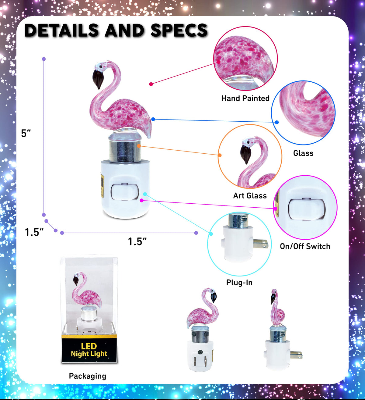 Cota Global Flamingo Night Light - Decorative Night Lights Plug Into Wall With Switch, Unique Handmade Glass Led Night Light For