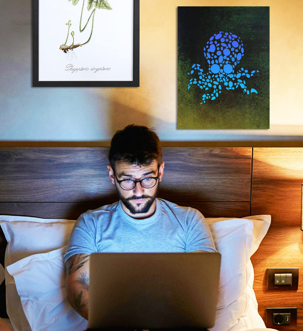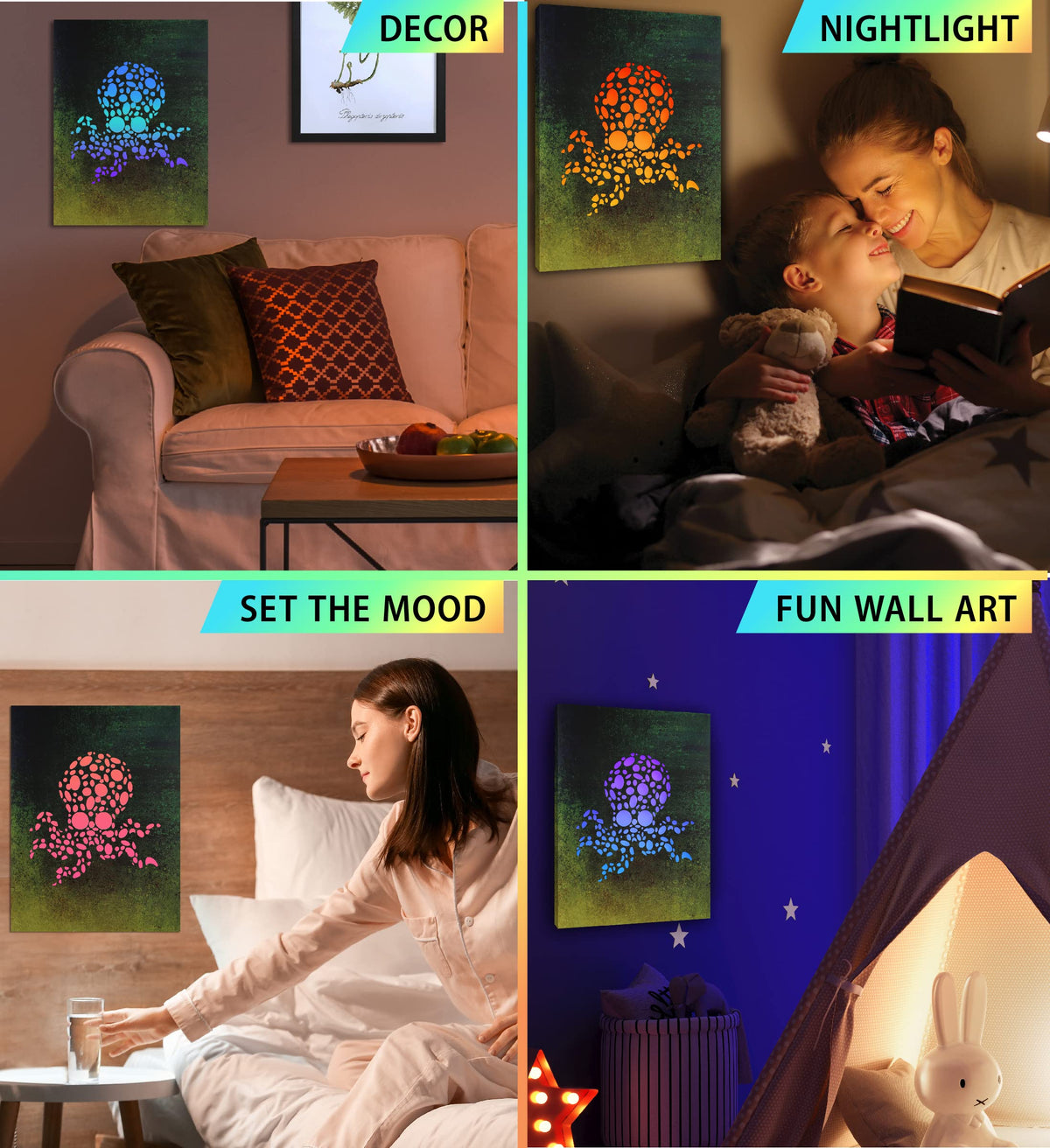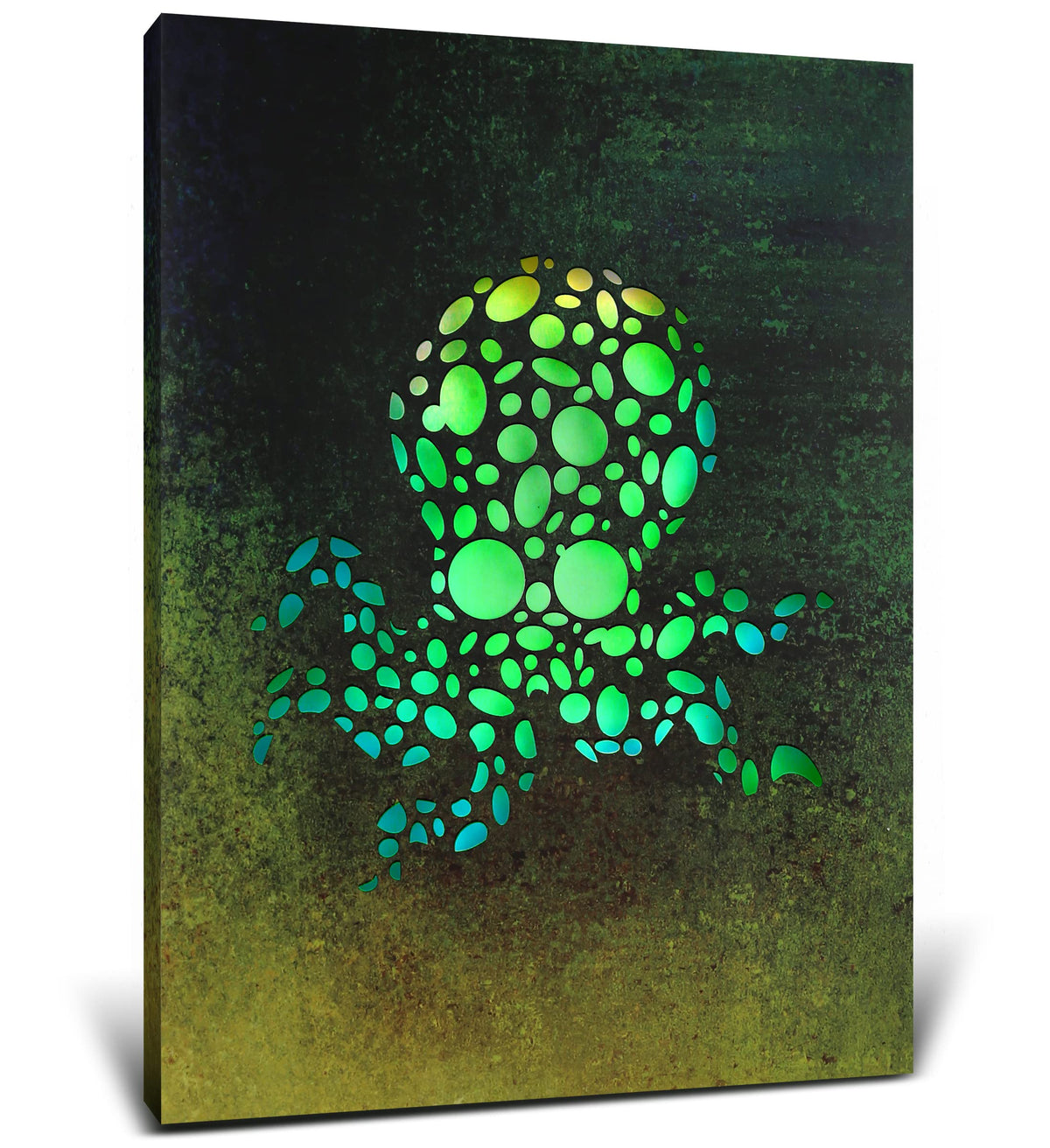 Cota Global Octopus Light Up Led Wall Art - Fun Changing Color Led Light Up Picture Art For Bedroom, Modern Wall Hang Living Roo
