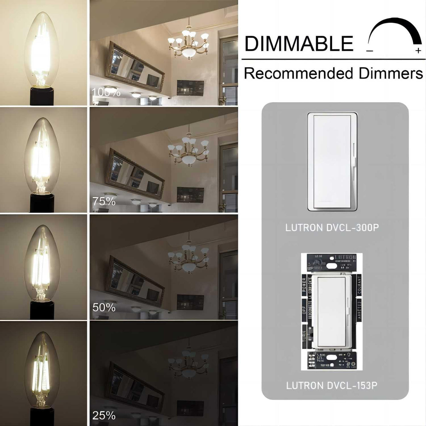 - **Dimmable Flexibility**: Easily adjust the brightness from 10% to 100% with compatible E12 dimmer switches, allowing you to create the perfect ambiance for any occasion, whether it's a cozy dinner or a bright workspace.