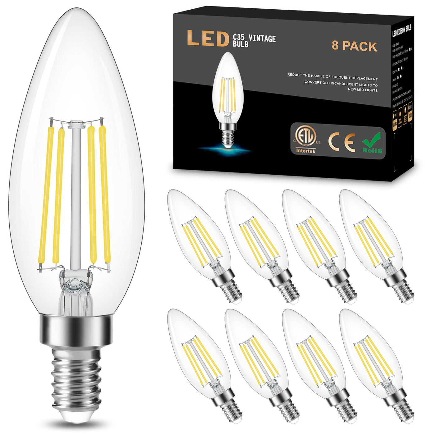Package Include: 8 pcs C35 E12 LED Candelabra Bulb (Dimmable)