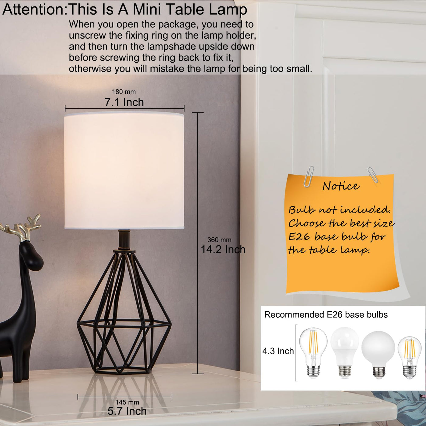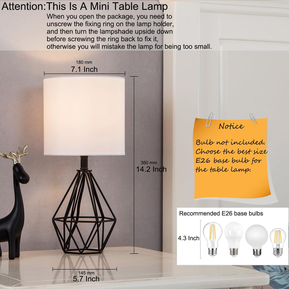 Package Includes: - 1 x Table Lamp (bulb NOT included) - 1 x Lamp Shade