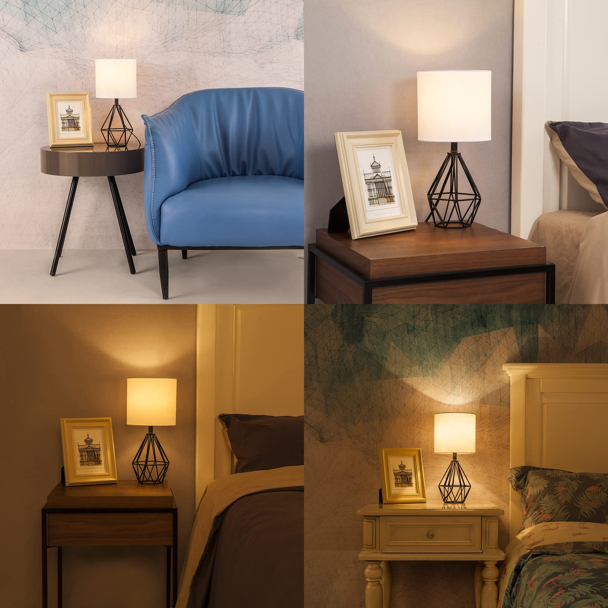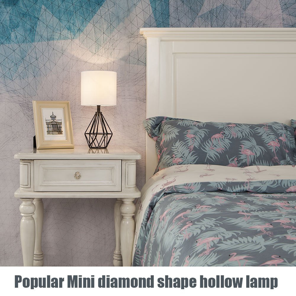 Amazing Design: The modern boho lamp features a hollowed-out geometric black metal cage base paired with a cylinder white fabric lampshade, creating a romantic atmosphere. Easy installation ensures a hassle-free setup.