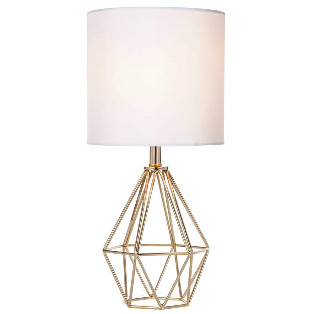Stunning Aesthetic: Featuring a modern gold hollowed geometric base and a chic white fabric lampshade, this lamp adds a touch of sophistication and romance to any setting.