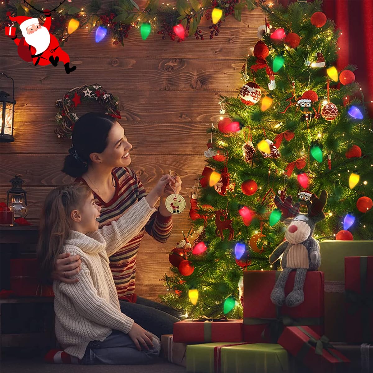 Q: How long is the Couah C7 Christmas Lights string?A: The Couah C7 Christmas Lights string is approximately 24 feet long and features 50 clear multi-color LED bulbs.