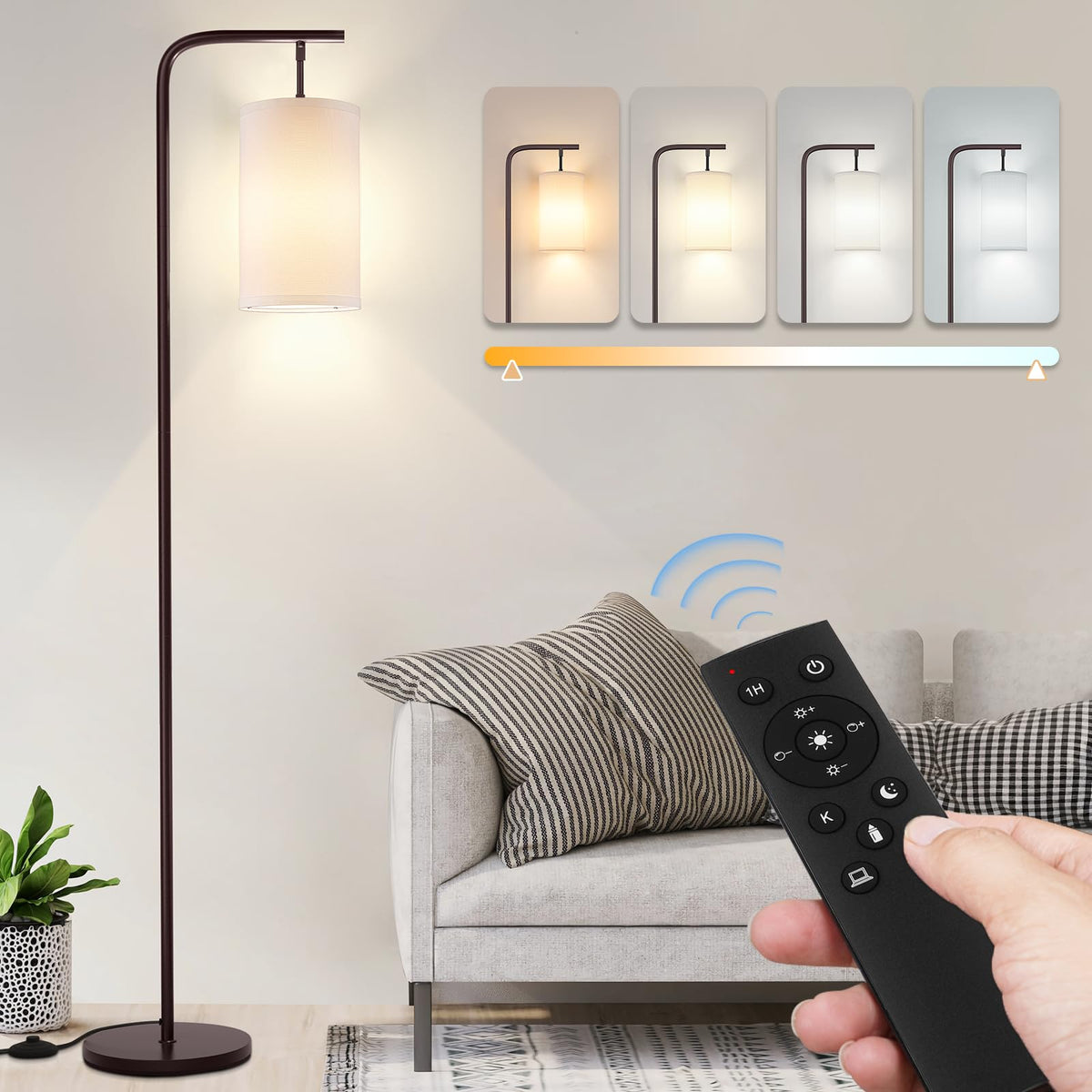 Q: What is the brightness range of the Coucrek Floor Lamp?A: The Coucrek Floor Lamp features a remote control that allows you to adjust the brightness from 10% to 100%, providing the perfect amount of light for any activity.