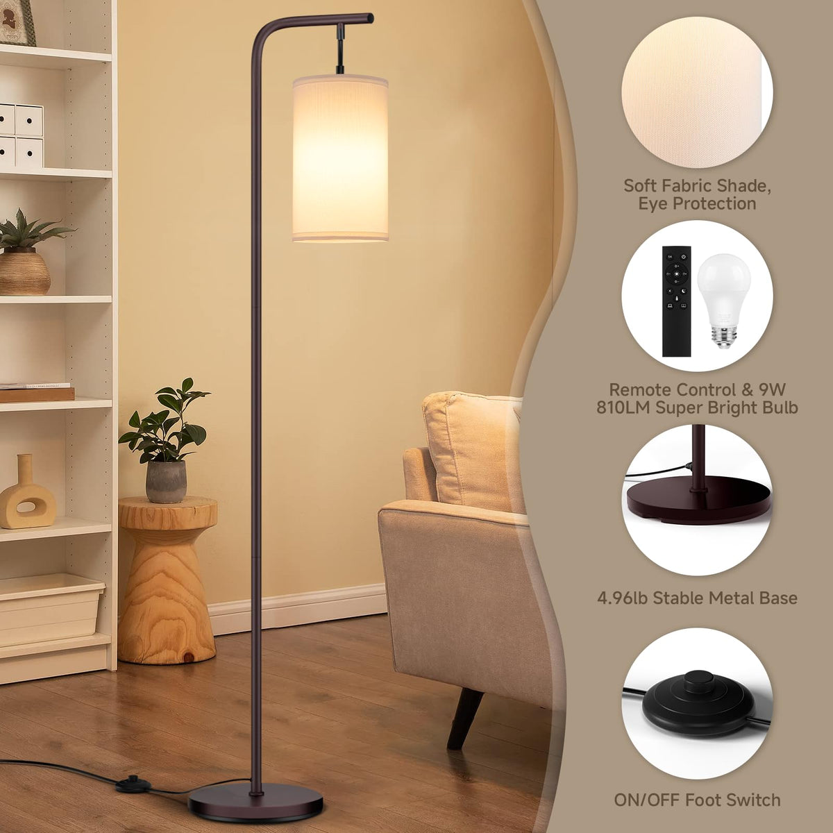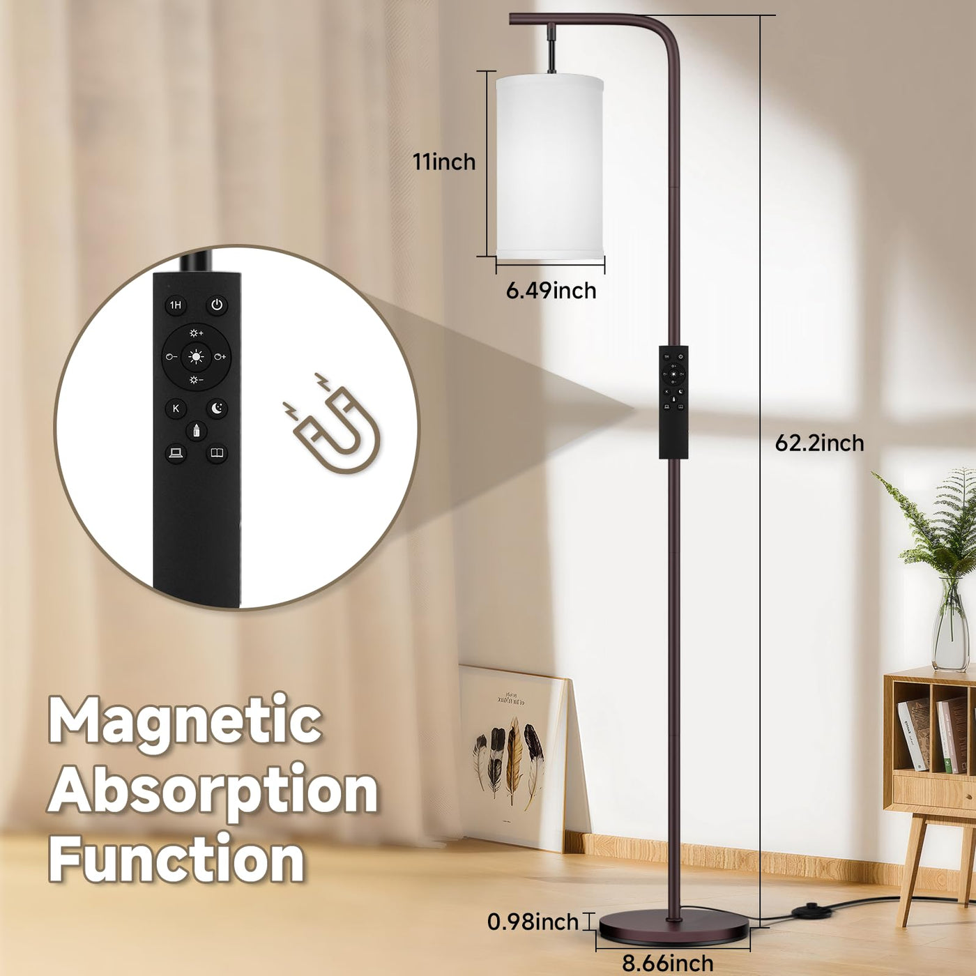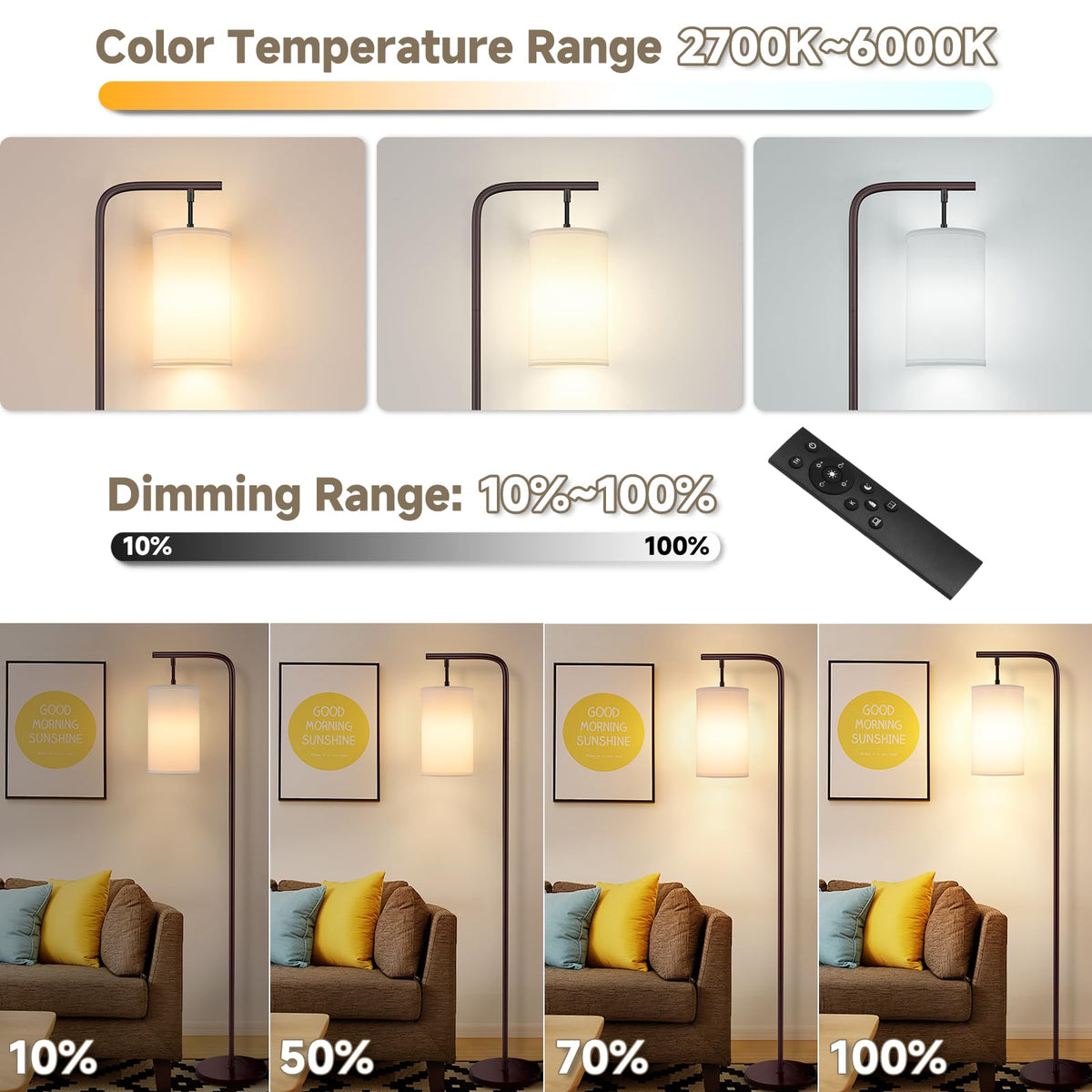Coucrek Floor Lamp For Living Room, 9W Led Bulb, Remote Custom Color Temperature & Brightness, Standing Lamps For Bedroom Office