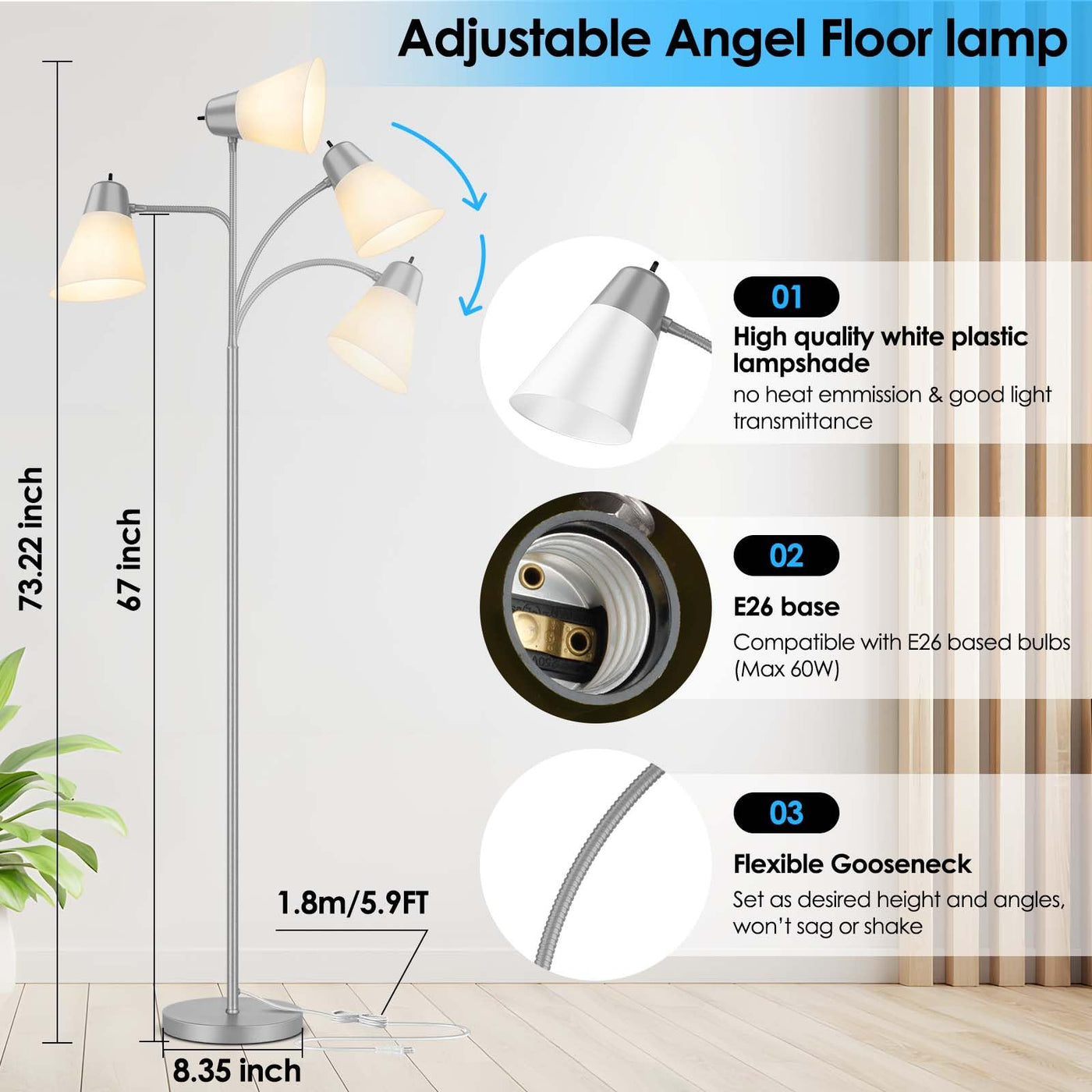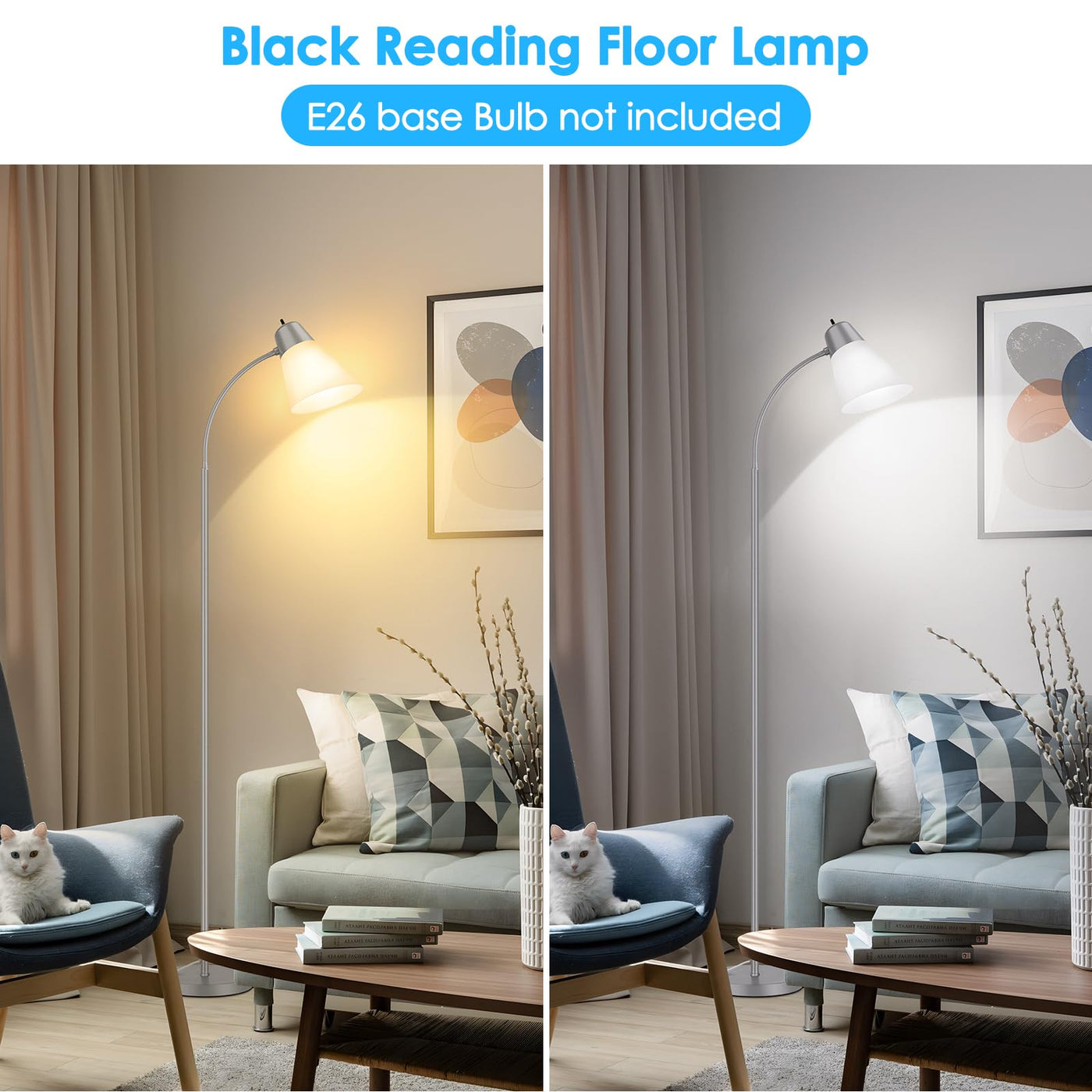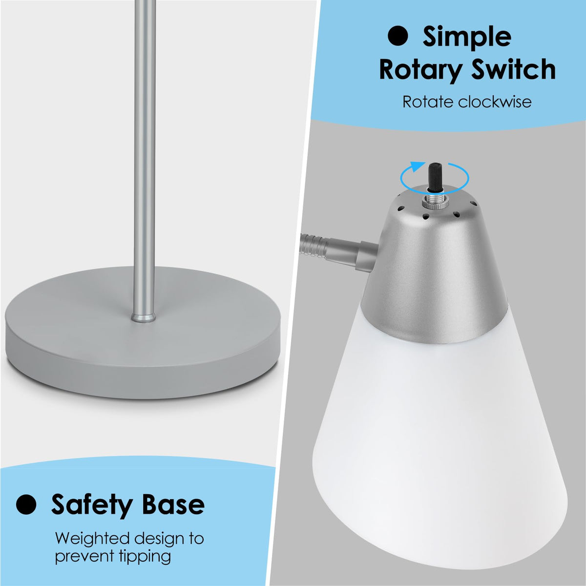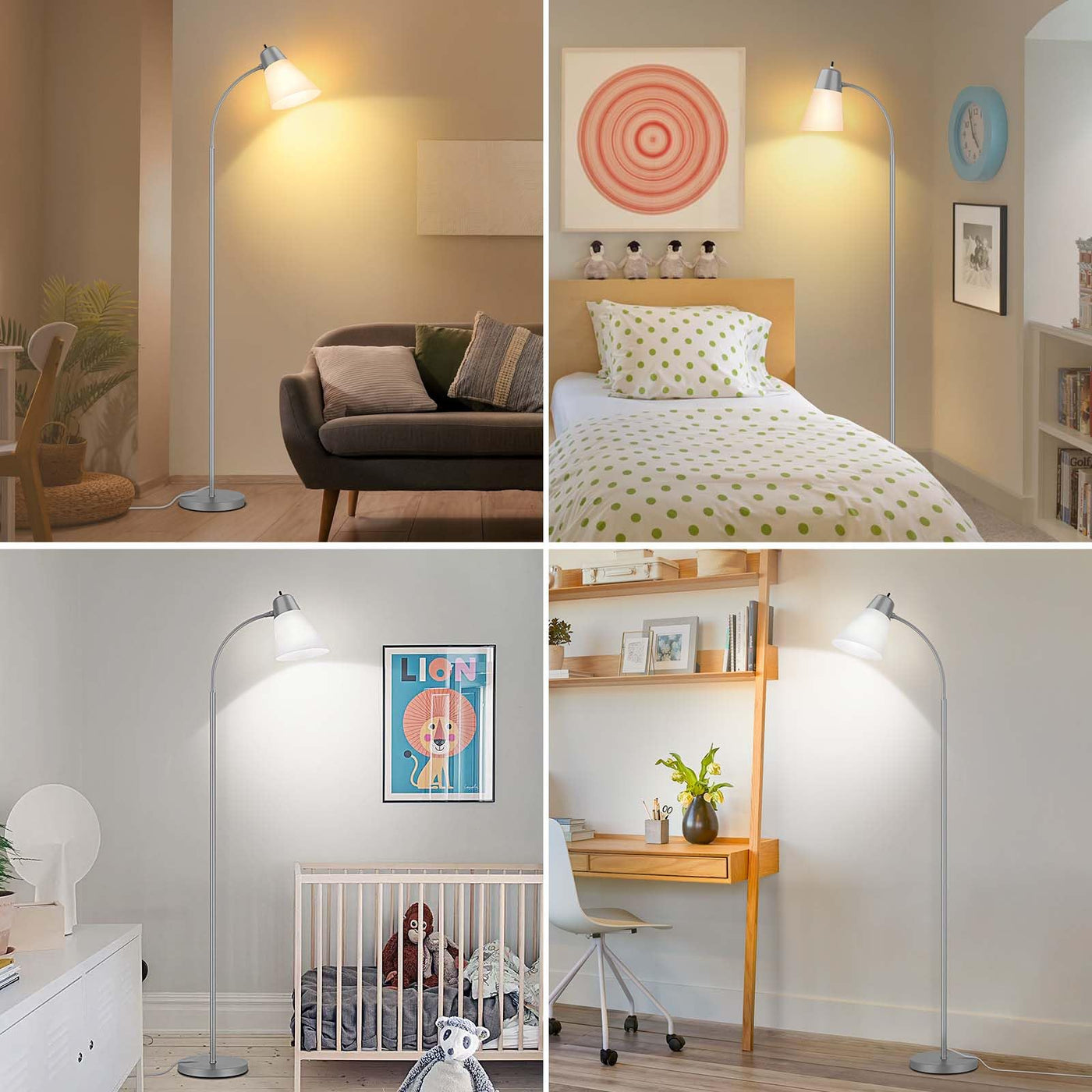 Coucrek Floor Lamp For Living Room, Adjustable Gooseneck Standing Lamp With White Plastic Shade, Grey Reading Floor Lamps For Do