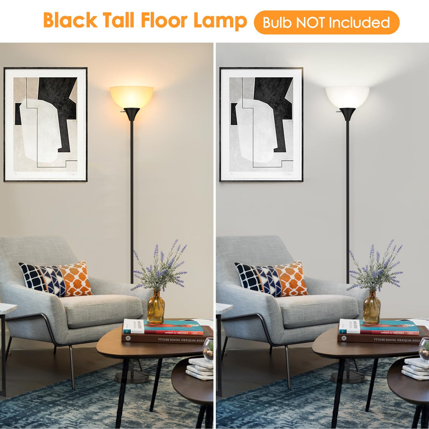 Coucrek Floor Lamp, Led Standing Lamps With White Plastic Shade, Black Modern Torchiere Floor Lamp, Tall Lamps For Living Room D
