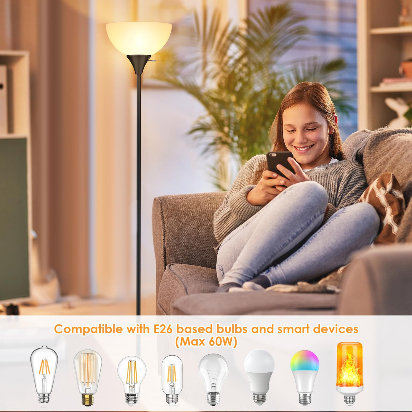 Q: Does the Coucrek Floor Lamp work with smart home devices?A: Yes, the Coucrek Floor Lamp is compatible with smart plugs and smart bulbs (E26 base), allowing you to control the lamp conveniently from your smartphone for a smarter home experience.