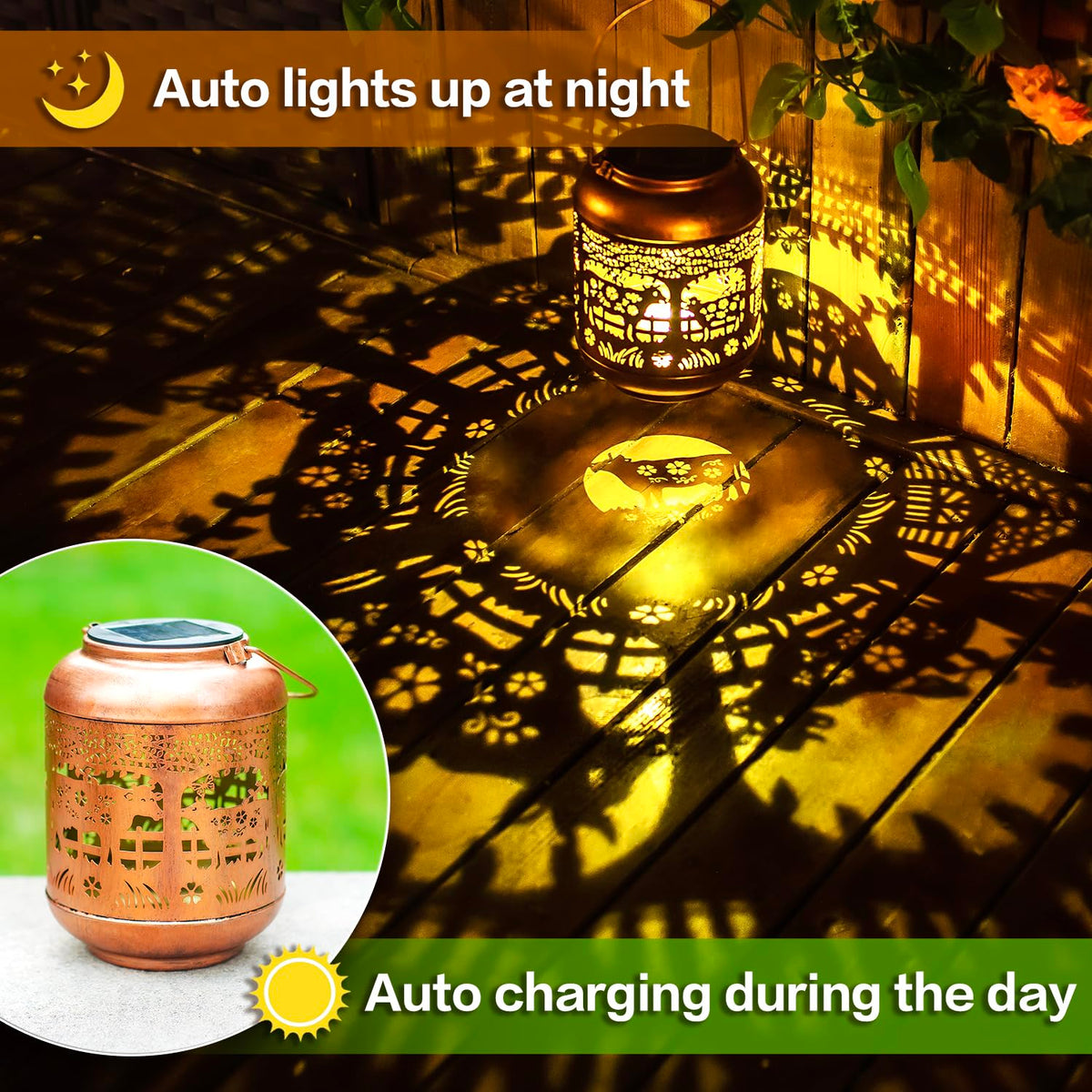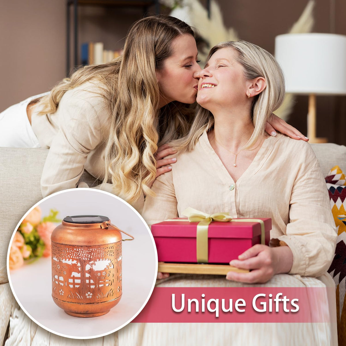 Cow Solar Lanterns Outdoor Waterproof Hanging Solar Lights Cow Gifts For Women Men Mom Metal Decorative Led Outdoor Lanterns For