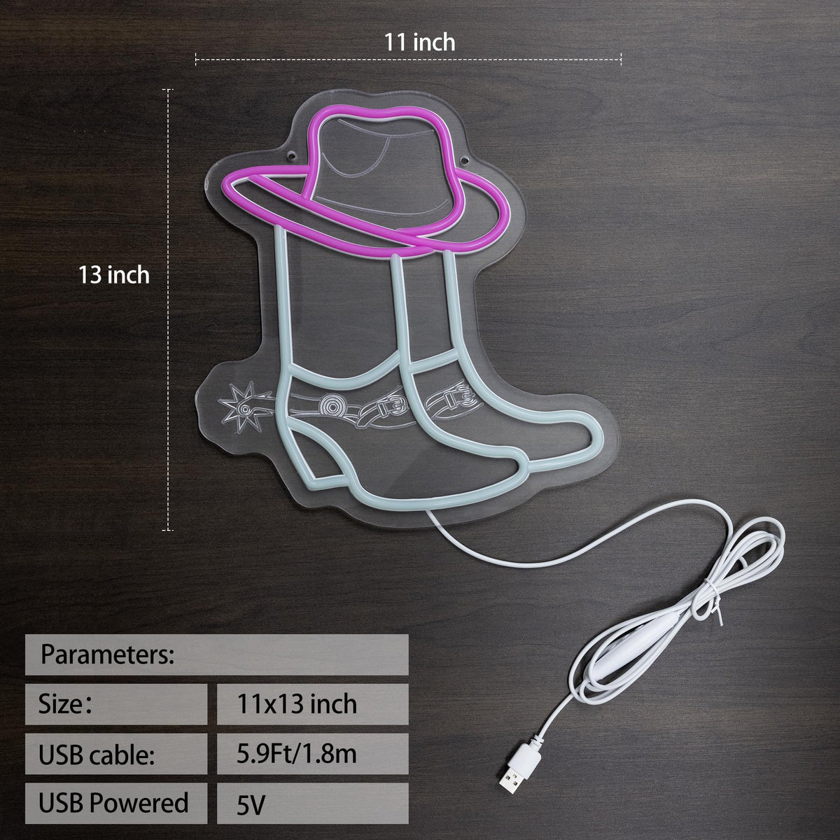 Cowboy Boot Neon Signs For Wall Decor-Cowgirl Boots With Hat Neon Signs For Decor Pink Aesthetic Western Wall Art Cowboy Led Sign For Game Room Bedroom Party Bar Birthday Christmas Gifts Dimmable Switch Usb Power Adhesive Hook Included